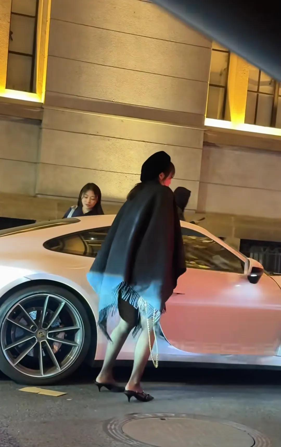 吴艳妮在成都穿着短裤大腿看起来很粗壮,表情自信又张扬