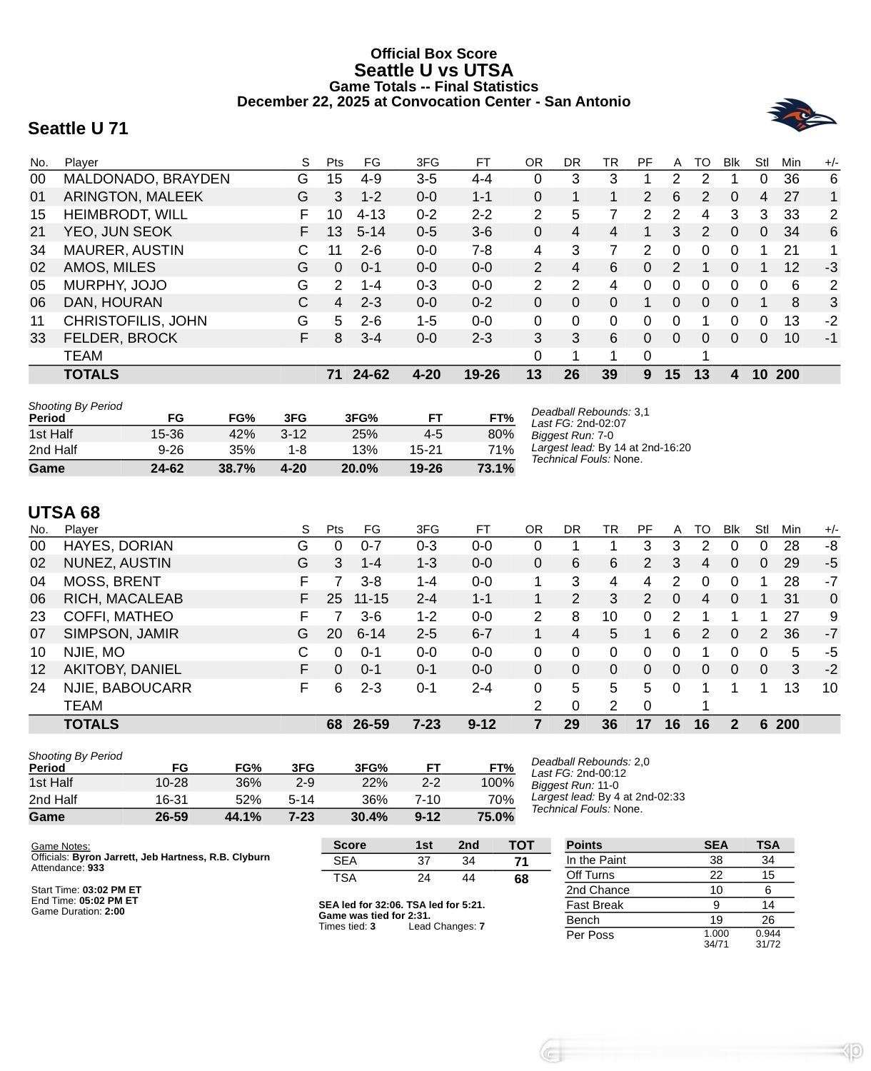 西雅图71比68击败德州大学圣安东尼奥分校,淡厚然出场8分钟得到4分1断淡厚然闯美的篮球青年海外中国球员NCAA