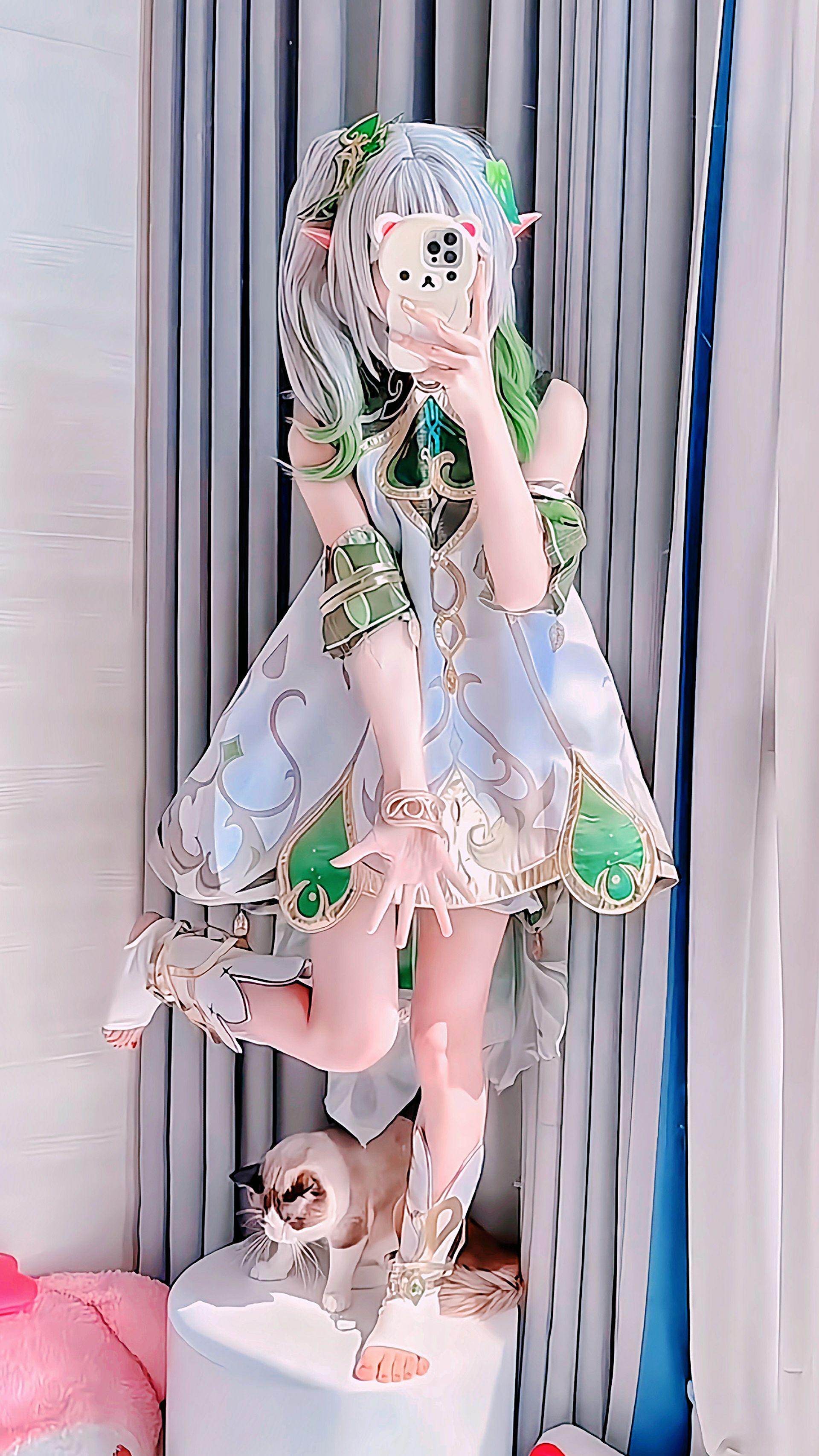 原神。纳西妲cos 香榭丽大街弥漫浪漫气息 如烟花坠落在神秘的梦境 我...