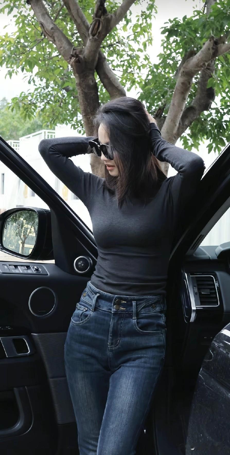 都市女郎的时尚穿搭,黑色高领衫搭配牛仔裤,尽显优雅与自信。