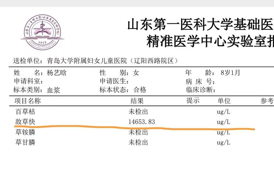 刚过完8岁生日没多久的山东女孩儿杨艺晗,疑似误喝敌草快,现在病情危重,在ICU里透析治疗。 孩子爸说小艺晗误喝了30克,在医院血项检查也查出药物成分。 现在他们在青岛妇幼,因为身上设备太多,暂时不方便转院。 农药都有刺鼻气味,误食的可能性不大。 家长发帖求助,虽没有直接承认,但也间接得说明当时孩子是被动喝入,另有一个大人也喝了,并且已经离世。 敌草快是一种联吡啶类除草剂,属于中等毒性农药,毒性不如百草枯,但被人喝下也是相当危险的。 希望小女孩尽早转危为安吧!可怜的孩子!