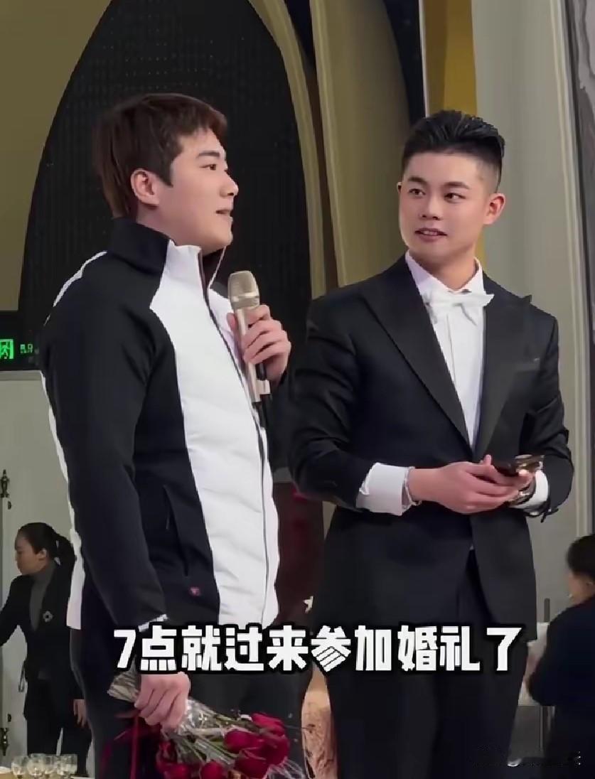 梁靖崑专门改签了机票,来参加哥们的婚礼。世界冠军到场,总不能轻易饶了他,所以新娘抛鲜花环节,动了心眼(我猜的),鲜花精准奔向梁靖崑。加上梁靖崑对快速移动的物体特别敏感,一把接住,然后就必须发布获奖感言了。 梁靖崑稳的一批,毕竟是见过大场面。梁靖崑甜甜的给新人,给在座的亲朋,还有自己都送了祝福! 梁靖崑办事,稳当!