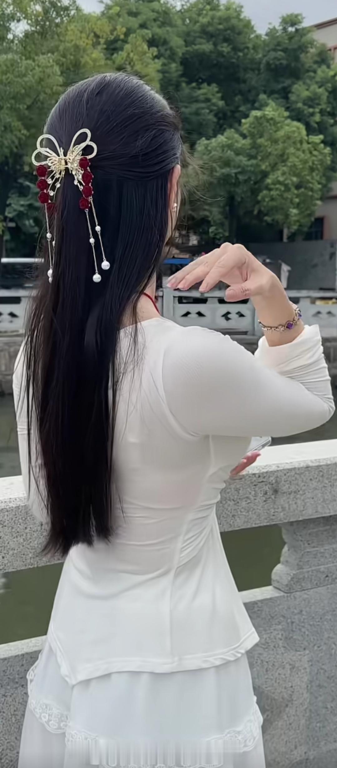 古典优雅,白衣飘飘,蝴蝶发饰,古风韵味。