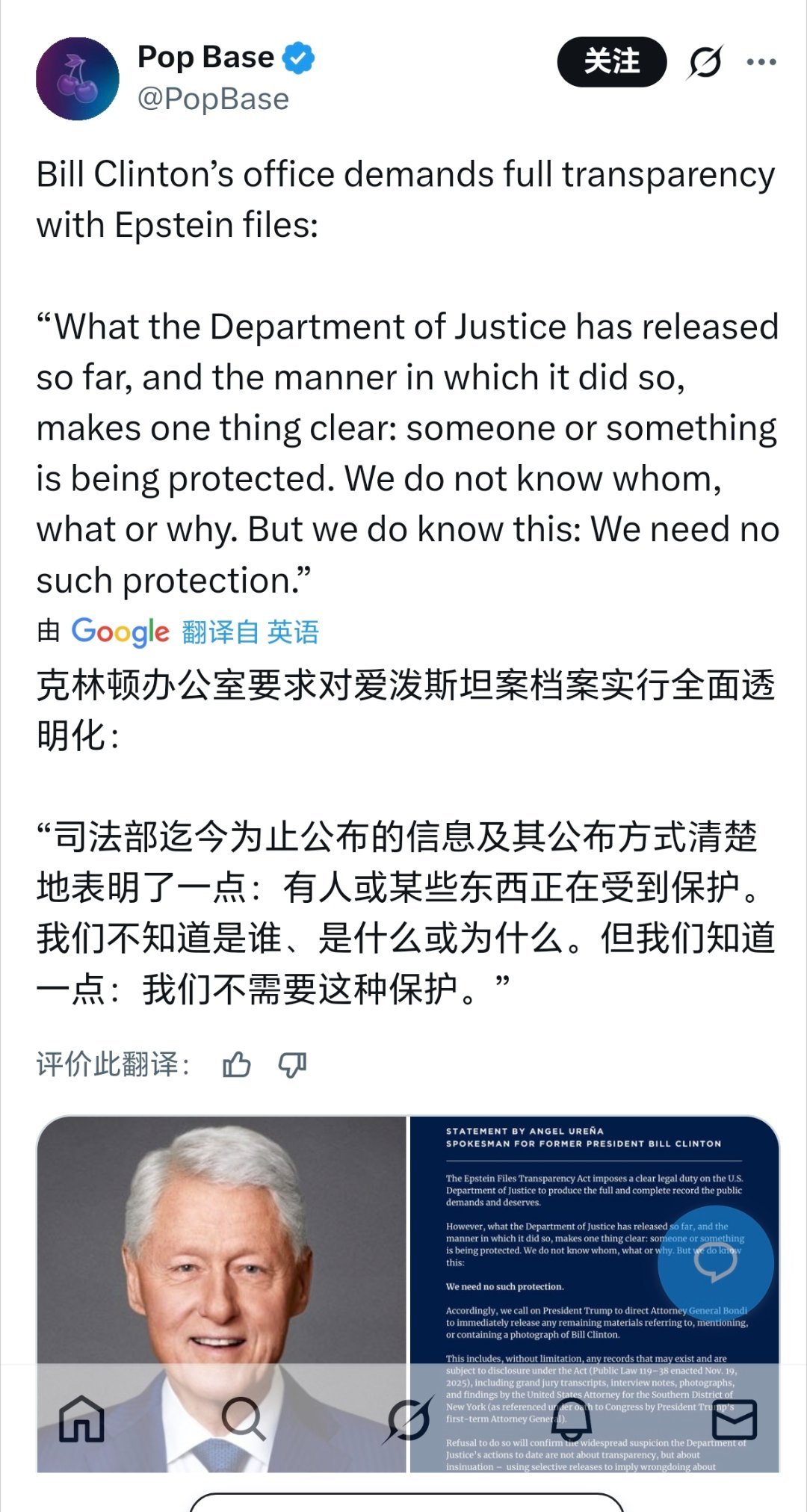 克林顿方面表示,特朗普有种就公开所有的爱泼斯坦档案