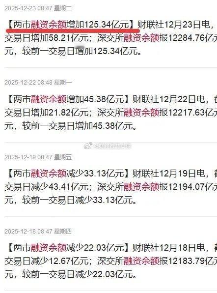 来了来了,杠杆资金加速流入,如果今天的数据还是100亿以上,指数可能要加速。不管个股还是指数,推动股市上涨的核心驱动力就是资金。增量资金持续流入,是指数持续走牛的必要条件。如果增量资金不足,指数只能走脉冲式上涨,沪指在3000点附近晃荡了多年,根本原因就是增量资金是阶段性的,流入阶段指数涨,甚至产生牛市;持续流出对应了指数的阴跌。从去年924至今,有2波大涨,一波是去年国庆节前,资金抢筹式流入,带动指数井喷;第二波就是今年7-10月份,两融资金持续流入,带动指数走强。今年10-12月份的A股,和4-6月是相似的剧情。指数横盘阶段,长线资金“抄底”,拿走了浮动筹码。和上次不同的是,增量资金的来源不一样,4-6月份,是汇金在买,拿走了低位筹码;这次,10-12月份,是大型机构在买,拿走了对未来没有信心,没有持股耐心,总想着躲调整的筹码。昨天有个好的信号,融资余额增加125亿,重回百亿以上。如果后面几天,还能保持在百亿水平,说明两融资金加速流入,指数很有可能像789月份一样,走出一波大行情;如果流入速度慢,指数会震荡走强,走慢牛。等待资金做出选择。股票