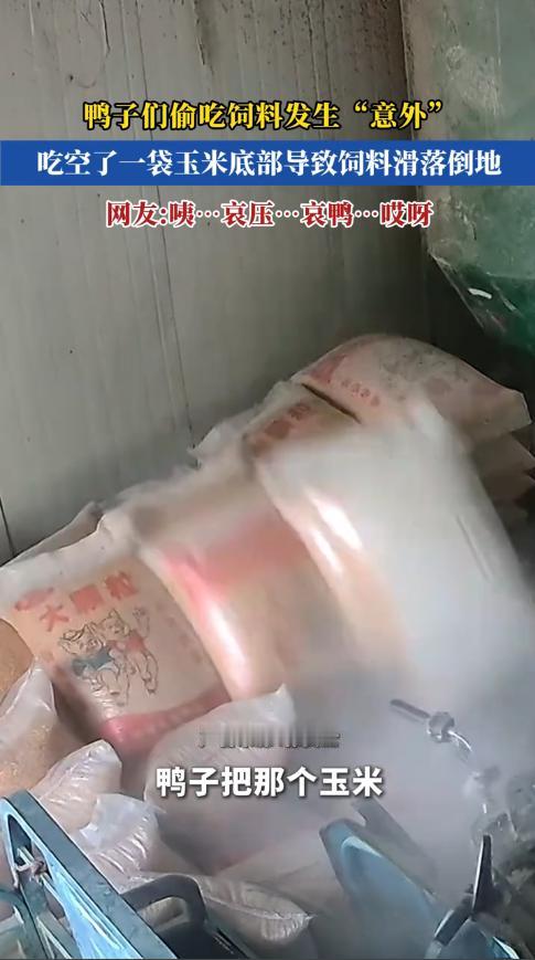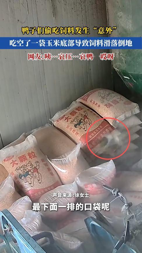 “悲剧还是发生了!”12月21日,江苏盐城,一女子将鸭子和玉米关在一起,结果女子离开后,鸭子开始偷吃最下层的玉米,最终导致玉米轰然倒塌,将数十只鸭子埋了进去!女子发现后大吃一惊,幸好只死了8只。古人云:鸟为食亡! 在农村地区,养鸭养鹅的人有不少,不过要注意的是,一定要把动物和饲料分开,如果关在一起,卫生是一个问题,鸡鸭还可能把自己“撑死”。 徐女士就养殖了不少家畜、家禽,其中就包括几十只鸭苗。这天下午,徐女士将新到的饲料搬至库房后,就顺道把鸭子也赶了进来,随后她便回去了。 可等到徐女士走后,鸭子们嗅到了食物的美味,纷纷跳上车偷吃起来,随着袋子里的玉米逐渐被掏空,上方的袋子开始倾斜,最终轰然倒塌! 数十只贪吃的鸭子来不及反应,被埋在了饲料里面,几只鸭子彻底为此付出了性命。 等到徐女士第二天来开门时,看到这一幕心都凉了半截,担心鸭子全都被压死了,好在把玉米搬走后,只找到了8只死鸭,其余的还都活蹦乱跳的。 不过经历了这件事,徐女士也不敢再在把鸭子关进库房了。 网友看后表示,这下真是“好吃死了”!这养殖户真是粗心,怎么能把鸭子和饲料关在一起呢,它们可不像人一样,见到好吃的就走不动道了。 信息来源:《12月21日,江苏盐城市养殖户徐女士称,数十只鸭子掏空了一袋玉米底部,导致一排的玉米袋滑落倒地。监控显示玉米倾倒后压死8只鸭子,其余二十多只幸存。》闪电新闻