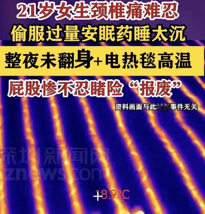21岁的大学生小林因为长期颈椎疼得厉害,只能休学在家养着。前几天寒夜里,她实在疼得睡不着,偷偷吃了过量安眠药,想好好睡一觉。结果药劲儿太大,她整个人像被“定住”了一样,翻个身都做不到。更糟的是,她睡前还开了电热毯,整夜高温烘着,第二天早上醒来,屁股疼得直不起身,掀开衣服一看——巴掌大的紫红色淤青,像块烂苹果似的,看着都吓人。 小林妈妈赶紧带她去医院,医生一检查,直接下了诊断:Ⅳ期压疮,也就是咱们常说的“褥疮”,创面都深到骨头了!医生赶紧安排手术,清理溃烂组织,折腾了好一阵子,小林才慢慢好起来。这事儿听着离谱,可背后藏着俩“隐形杀手”——一个是安眠药,一个是电热毯。 先说安眠药。小林本来颈椎就不好,疼得睡不着,吃安眠药本是为了缓解,可她没按医嘱,自己偷偷加量。结果药劲儿太大,直接抑制了她的翻身本能。咱们睡觉时,就算睡沉了,也会不自觉动一动、翻个身,这是身体在保护自己,防止局部受压太久。可小林吃了过量药,整个人像“植物人”似的,一动不动,皮肤和肌肉被压得死死的,血液都流不过去,时间一长,组织就开始坏死。 再说电热毯。这玩意儿冬天用着是暖和,可小林整夜开着,高温烘着皮肤,就像把屁股放在“小火炉”上烤。医生说了,皮肤受压超过4小时,毛细血管就闭塞;超过6小时,肌肉就开始坏死。小林这俩条件全占了——安眠药让她动不了,电热毯高温加速组织损伤,双重夹击下,压疮直接从Ⅰ期(皮肤发红)跳到Ⅳ期(烂到骨头),要不是送医及时,真可能“报废”! 这事儿最扎心的是,小林才21岁啊!本来该是活力满满的年纪,却因为两个“小疏忽”——没按医嘱吃药、整夜开电热毯,差点把自己“睡”进医院。其实压疮不是老年人的“专利”,年轻人、上班族,甚至术后病人,都可能中招。比如长期久坐的上班族,屁股压在椅子上几小时不动,也可能得压疮;术后病人因为麻醉或疼痛不敢动,同样危险。 所以啊,冬天用取暖设备,千万别图暖和就整夜开,睡前开一会儿,上床就关掉;吃安眠药更得听医生的,别自己加量,否则“助眠”变“伤身”,后悔都来不及。身体是自己的,疼在自己身上,没人能替你扛。 看完小林的事儿,你身边有没有人冬天整夜开电热毯的?或者自己有没有吃过过量安眠药?评论区聊聊呗——说不定你的提醒,能让更多人避开这个坑,少一份危险,多一份安全呢! (事件来源:深圳新闻网)