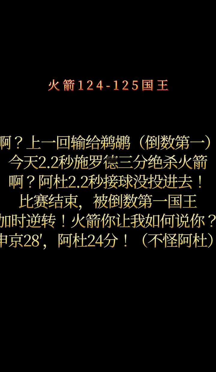 2.2秒,一个三分,把火箭钉在耻辱柱上。 施罗德出手时,阿杜的指尖离球只差毫厘。 就是这点距离,葬送了火箭一整场的努力。 阿杜空砍24分,京拼下28分,全成了背景板。 输国王前,他们刚败给西部垫底的鹈鹕。 一支想冲季后赛的球队,连续被“软柿子”噎住喉咙。 问题不在技术,在心气。 看看接下来的赛程:掘金、快船。 一道悬崖就在眼前。 目前西部第11,距离附加赛门槛还差2.5个胜场。 每一场这样的失利,都在吞噬所剩无几的容错空间。 强队能赢该赢的球,而强队气质,正是在这种电光石火的2.2秒里炼成的。 他们输掉的不是一场比赛,而是一个建立赢家气质、紧咬季后赛席位的黄金窗口。