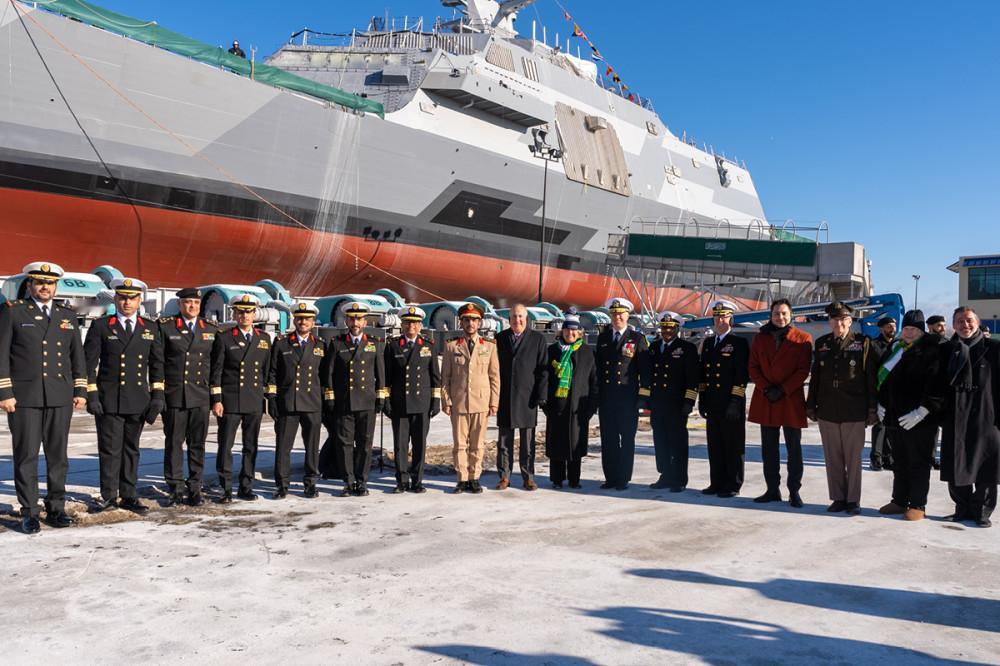 烽火问鼎计划每天认识一件兵器 2025年12月16日,在芬坎蒂尼海事集团美国造船厂(位于威斯康星州马里内特)举行仪式,为沙特阿拉伯海军建造的首艘新型MMSC型护卫舰“沙特”号(舷号820) 下水。MMSC型护卫舰(MMSC:多任务水面作战舰艇) 是基于美国“自由”级滨海战斗舰(由洛克希德·马丁公司设计) 项目的多用途舰艇,芬坎蒂尼马里内特海事公司此前已为美国海军批量建造了19艘该级舰艇。与美国“自由”级滨海战斗舰相比,沙特的MMSC拥有更强大的设计武器配置。MMSC护卫舰满载排水量3600吨,最大长度118.6米,宽度17.6米,吃水4.3米。其柴燃联合动力装置应能提供适中的30节最高航速。在10节经济航速下,续航里程为5000海里。包括航空人员在内,舰员编制为101人。MMSC型护卫舰预计将配备两座四联装NSM反舰导弹发射装置和八单元通用型Mk 41垂直发射系统(CAMM防空导弹,通过MBDA公司的ExLS适配器,每单元Mk 41发射装置可装填3枚CAMM导弹,即每舰总备弹量为24枚CAMM导弹)。此外,MMSC型舰艇的武器配置还应包括一座11联装Mk 15 Mod 31“海拉姆”近程防御导弹系统;一门BAE系统公司博福斯57毫米Mk 110自动舰炮;两座324毫米Mk 32三联装鱼雷发射管(MK 54反潜鱼雷);以及四座KNDS“独角鲸”20毫米遥控武器站和最多十挺12.7毫米机枪。MMSC型护卫舰的无线电电子装备将包括:洛克希德·马丁公司的COMBATSS-21作战管理系统;亨索尔特公司的TRS-4D对空搜索雷达;萨博公司的Ceros 200综合光电/雷达火控系统;一部紧凑型低频主/被动变深拖曳声纳(泰雷兹公司CAPTAS系列);阿戈·ST/波音公司的WR-2000电子支援与电子对抗系统;洛克希德·马丁公司的自动发射消耗性干扰弹系统;AN/SLQ-25A“尼克斯”鱼雷对抗系统;罗克韦尔·柯林斯公司的AN/ARC-210通信设备;Link 16数据链、自动数字网络系统和联合企业区域信息交换系统通信设备;诺斯罗普·格鲁曼公司的UPX-29敌我识别系统;L-3通信公司的选择性可用性反欺骗模块抗干扰卫星导航接收机。MMSC型舰艇将具备长期搭载两架西科斯基(洛克希德·马丁)MH-60R“海鹰”多用途直升机的能力。根据此前的订单,沙特的MH-60R直升机应会获得AGM-114“地狱火”导弹、BAE系统公司的70毫米APKWS II精确制导火箭弹以及雷神公司的324毫米Mk 54轻型鱼雷作为其武器配置。