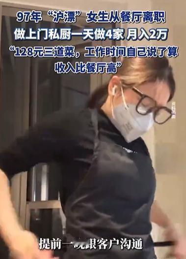 12月21日发布,上海一28岁女生为了赚大钱,竟然从高档餐厅辞职,做上门私厨,专门帮那些不想做饭的家庭,以此获取报酬。她每天去4个家庭,耗时约8小时,128元做三道菜,一个月收入能达到15000到20000。女生坦言:“收入比之前高,时间自由,自己挺满意的。” 这位女生是97年的沪漂,之前在上海一家高档餐厅工作,每天在后厨待10多个小时,忙得脚不沾地,月薪也就8000多块。 餐厅规矩多,食材处理、摆盘都有严格要求,时间久了她觉得又累又压抑。 后来看到身边有人做上门服务赚了钱,想着自己本身就会做饭,手艺也扎实,不如辞职试试上门私厨,既能发挥特长,还能多赚点。 她的服务规则很明确,128元做三道菜,食材可以代买也能让客户自备,洗碗另加20元,5公里内免费上门,超出部分按距离收费。 每天早上9点她就出门采购食材,挑菜选肉都很较真,新鲜度是她最看重的,毕竟客户愿意花钱请私厨,图的就是放心和地道味。 一般她每天会安排4家客户,每家大概停留1.5到2小时,从食材处理、烹饪到收拾灶台,都做得干干净净。 中午就在客户家附近简单吃点,下午继续跑单,最晚傍晚6点就能结束工作,算下来一天大概耗时8小时。 有次给一对年轻夫妻做第一单,她根据对方口味做了红烧肉、清炒时蔬和番茄鸡蛋汤,软烂入味的红烧肉很合胃口,夫妻俩当场就定了每周三次的固定服务。 说白了,她能稳住客源,靠的就是扎实的厨艺和贴心的细节,不同客户家的厨房设备不一样,她总能快速适应;遇到有老人小孩的家庭,会主动调整口味,做得更软烂清淡,慢慢积累下来,回头客越来越多,订单也稳定了。 她自己也坦言,现在的收入比之前高不少,更重要的是时间自由,想休息就能自己安排,不用再看老板脸色,每天虽然跑4家有点累,但心里踏实又满足。 其实这两年上门私厨越来越受欢迎,像上海这样的一线城市,很多双职工家庭平时工作忙,没时间做饭,又不想总吃重油重盐的外卖,上门私厨正好解决了这个痛点。 不过也有人好奇,月入2万是不是真的那么好赚。 其实这里面也有不少隐性成本,交通费、食材损耗、工具折旧都要算进去,而且想做到高效接单,得把客户都集中在相近区域,不然通勤时间都不够。 但对她来说,能靠自己的手艺在上海站稳脚跟,还能拥有更多自由,这份选择就很值得。 现在越来越多年轻人不想被固定的职场规则束缚,像这样把专业技能变成灵活就业的资本,也是一种不错的打拼方式,毕竟在大城市里,能靠自己的双手赚钱,还能活得舒心,就已经很不容易了。 以上都是个人观点,对此您有什么不同的看法,可以在评论区留言讨论!!! (信源:第一眼新闻——97年“沪漂”女生从餐厅离职,做上门私厨一天做四家,月入两万)