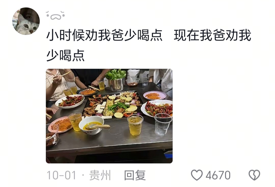 小时候劝我爸少喝点 现在我爸劝我少喝点