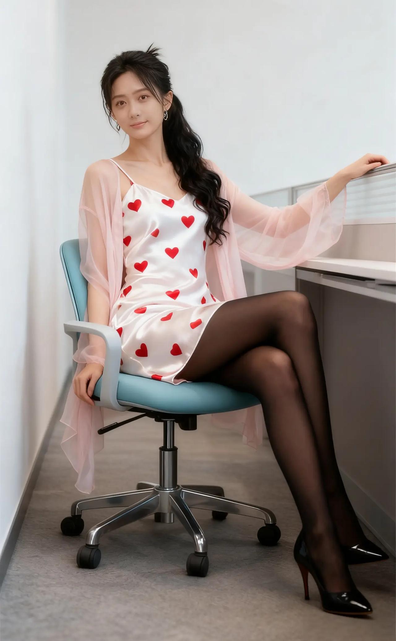粉色连衣裙的甜美诱惑,白色砖墙背景下的优雅姿态。