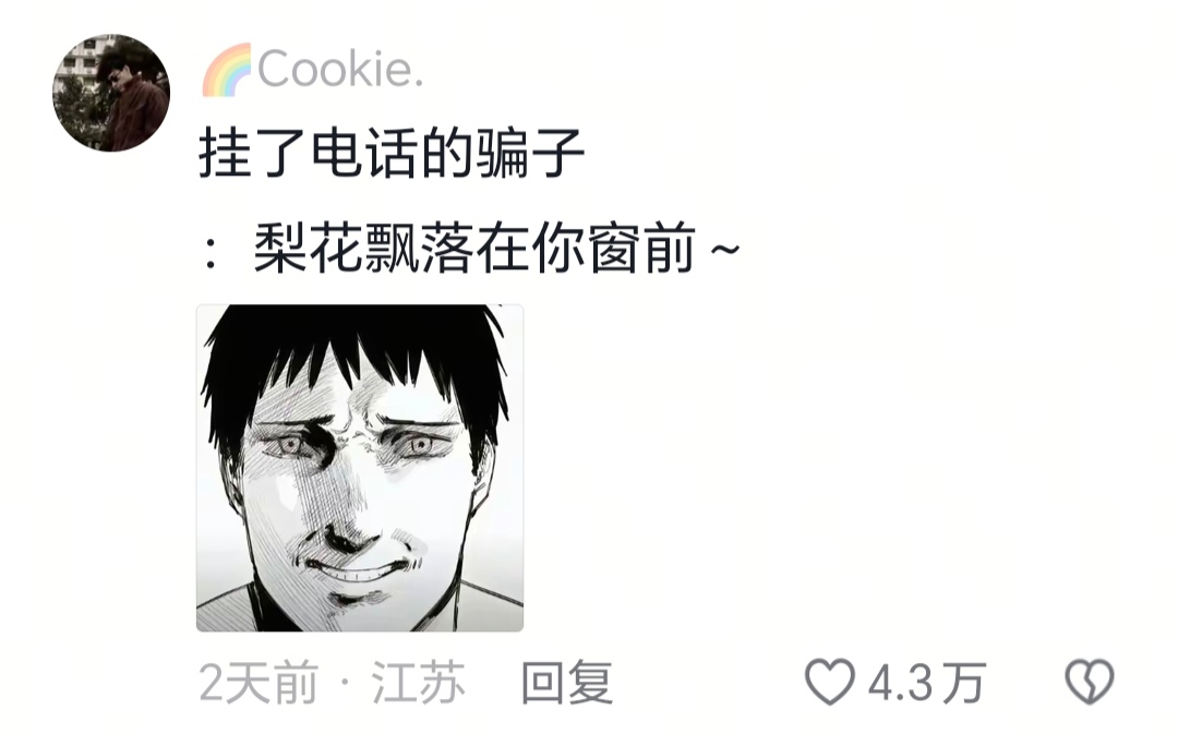 双方都处于一种绷不住的状态:一个绷不住笑,一个绷不住哭