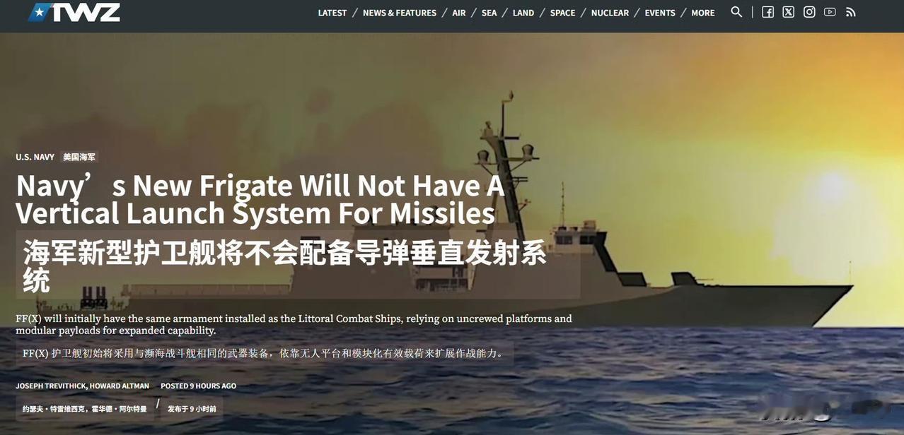 TWZ:问过了,首批 FF(X)新护卫舰没垂发。