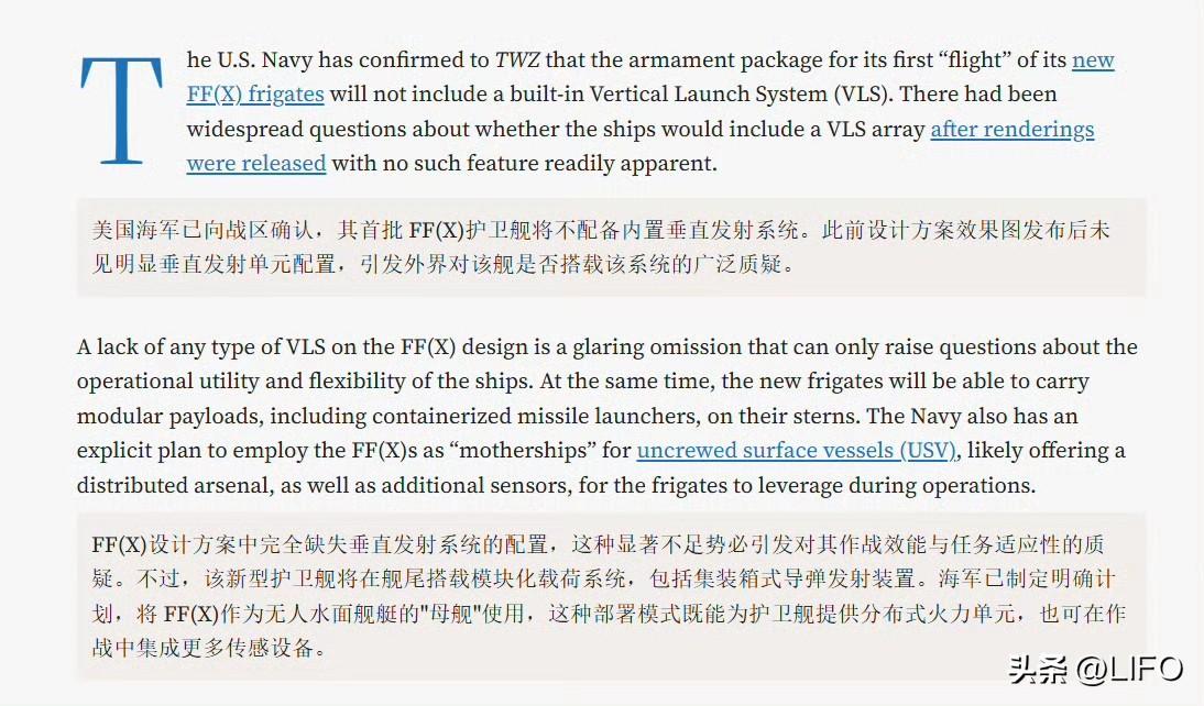 TWZ:问过了,首批FF(X)新护卫舰没垂发。