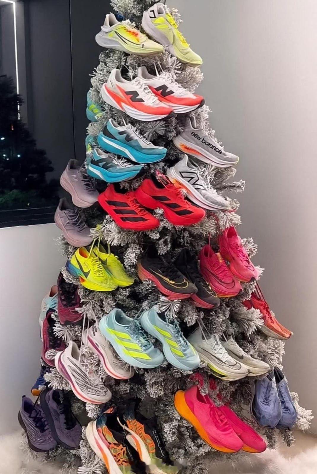 一年一度的跑鞋圣诞树大赛又开始了。圣诞树 圣诞节 跑鞋