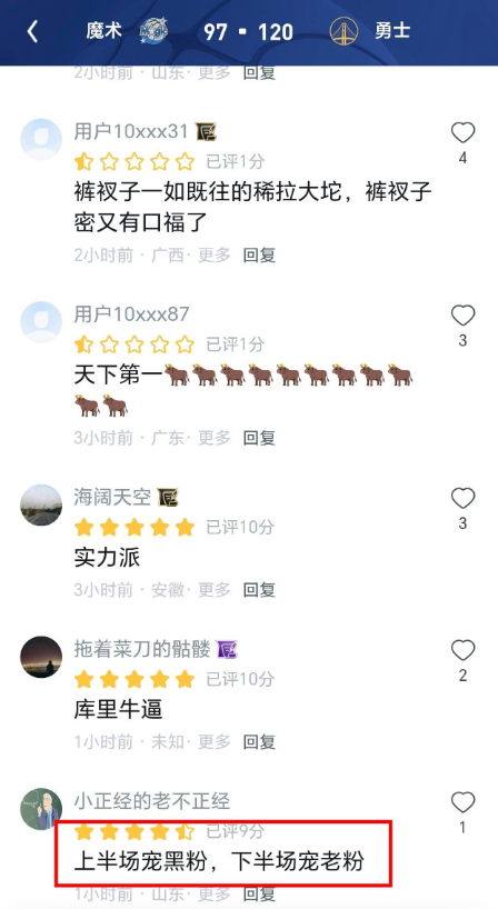 上半场宠黑粉,下半场宠老粉,库里真是雨露均沾,UC直播间的都看服了。