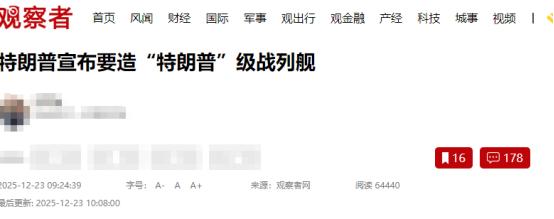 排水量35000吨!特朗普高调宣布:将建造20-25艘特朗普级战列舰! “这将是世界历史上最大、最致命、最美观的水面作战舰艇!” 当地时间 12 月 22 日,佛罗里达州海湖庄园的金色吊灯下,特朗普对着镜头唾沫横飞,身后的海报上 “特朗普级战列舰” 的剪影格外醒目。 这位前总统高调宣布启动 “黄金舰队” 计划,要造 20 到 25 艘 3 万至 4 万吨级的战列舰,这可是美国自二战结束后首次重启这类巨舰的建造,消息一出立刻炸了军迷圈,可细看下来,这更像场精心编排的政治秀。 先说说这计划里最扎眼的 “战列舰” 三个字。稍微懂点军事的都知道,这玩意儿早就是 “博物馆展品” 了。 二战时战列舰靠大口径舰炮称王,可导弹出现后彻底改写了海战规则:现代反舰导弹能在几百公里外发起攻击,而战列舰的主炮撑死了打 40 公里,等它摸到敌人跟前早被打成筛子了。 这 3.5 万吨的大家伙就是个活靶子,二三百米长的船体,导弹闭着眼睛都能打中,而且它连现代驱逐舰标配的防空导弹系统都没有,遇上空袭只能硬扛。 美国海军当年的依阿华级战列舰,80 年代改装一次就花三四亿美元,最后还是因为没用被退役,现在反倒要重走老路? 再看特朗普吹的 “硬核配置”:高超音速武器、轨道炮、激光武器全往上堆。听着唬人,可美国现在连成熟的高超音速导弹都没批量列装,去年试射还多次失败。 轨道炮研发了十几年,至今没解决动力问题,根本没法上舰。海军分析师布莱恩・克拉克早就戳破:这船本质是武库舰,跟美国正在搞的下一代驱逐舰计划完全冲突,纯粹是重复建设。 特朗普特意强调 “最美观”,要知道军舰可不是选美冠军,当年朱姆沃尔特级驱逐舰就是因为追求外形牺牲了实用性,现在还在港口趴窝呢。 最不靠谱的还是数字游戏。特朗普说总预算 260 亿美元,可 USNI News 一算账吓一跳:单舰造价至少 50 亿美元,25 艘就是 1250 亿,这还没算维护和武器费用。 美国今年国防预算也就 8860 亿美元,还要养 11 艘航母、造核潜艇,哪来闲钱砸给这种 “古董舰”?《政治报》更直接:国防预算里根本没这笔钱,纯属空头支票。 再说工期,特朗普拍胸脯说两年半造两艘,可美国现在就 4 家能造大型战舰的船厂,连阿利・伯克级驱逐舰都要造 4 到 5 年,这 3.5 万吨的大家伙怎么可能速成?光是建船坞、培训工人就得花好几年。 这计划连美国海军自己都没当真。表面上两家造船厂表态支持,说白了就是想抢政府订单,真要动工,工人不够、供应链断裂的老问题马上就来,看看福特级航母,延期 8 年超支 300 亿,就是现成的教训。 有专家直言:“这些舰艇不是聚焦实战需求,而是聚焦总统心中对战舰外观的想象”。特朗普向来喜欢 “金色噱头”,之前搞过 “金穹” 导弹防御计划,现在又来 “黄金舰队”,本质都是给选民画大饼,毕竟 “重振美国造船业”“强化海军霸权” 的口号听起来确实带劲。 更有意思的是历史的对照。二战时美国造了 10 艘衣阿华级战列舰,可到朝鲜战争就没用武之地了,越南战争只能当炮舰轰岸,海湾战争更是靠巡航导弹撑场面。 现在中国的 DF-21D、DF-26 反舰导弹能打 1000 公里以上,美国航母都得躲着走,这 3.5 万吨的战列舰上去不是送人头?有军事博主调侃:“这船要是真造出来,最大的作用可能是给中国的反舰导弹当靶船。” 说到底,这 25 艘战列舰计划就是场政治闹剧。特朗普懂不懂海战不重要,重要的是 “造巨舰” 的口号能煽动民意。可现实不会陪他演戏:美国造船业早就衰落,2023 年商船订单量连韩国的零头都不到。 军费缺口越来越大,去年光维护现有舰艇就花了 2000 亿。真要硬上,要么挤占航母、核潜艇的经费,要么继续加税,最后只会拖垮美军战斗力。 等选举热度一过,这 “黄金舰队” 大概率会和他之前的很多承诺一样,变成海湖庄园海报上的幻影。毕竟军费不是儿戏,战场更不看谁口号喊得响。