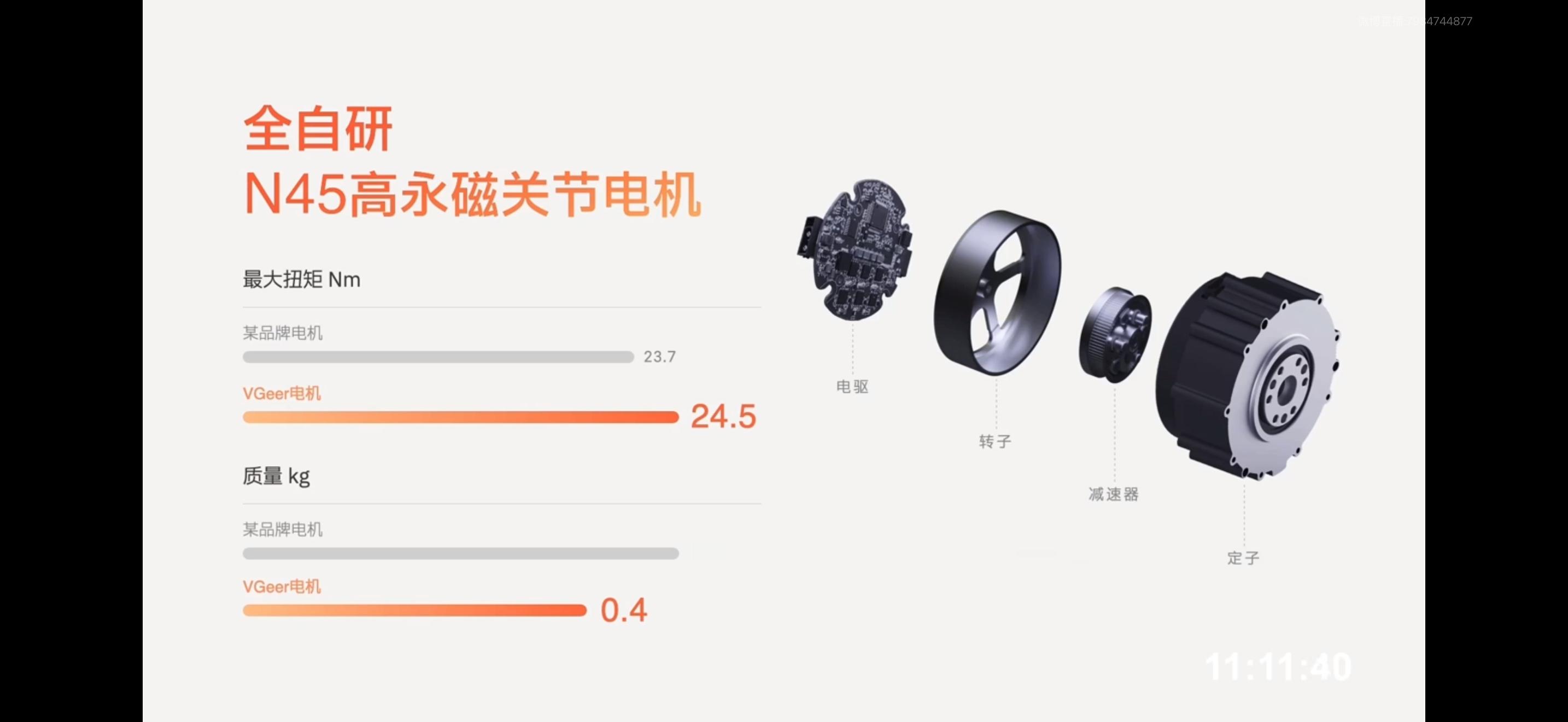 维他动力自研的N45永磁关节电机,非常小巧,同时具备高性能。大头波波这只机器狗身上有12个这类电机。机器狗