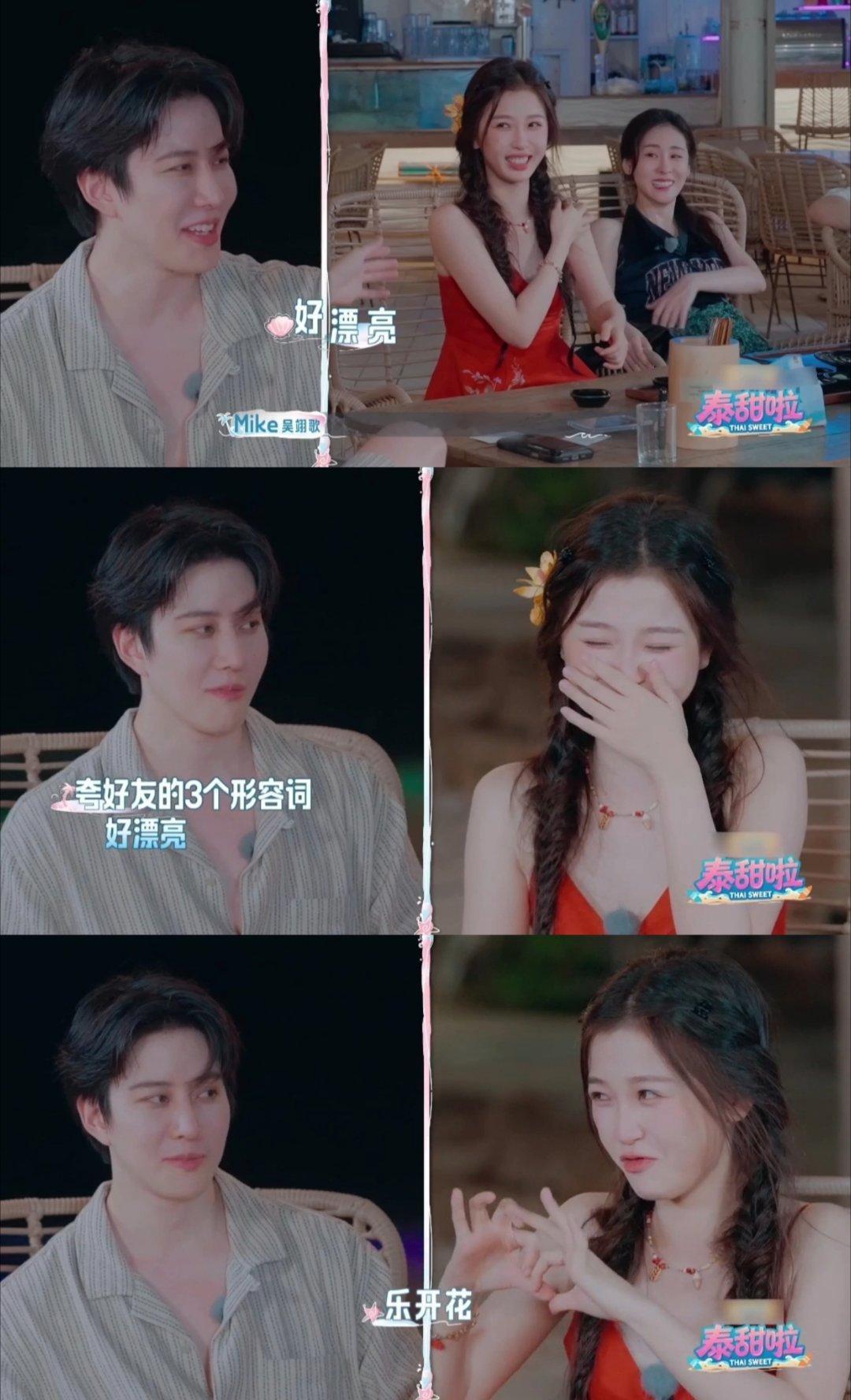 虞书欣和mike太好笑了 虞书欣和Mike同框就是喜剧片!一个努力用中文输出赞美,一个努力用表情管理互动,两人狂压嘴角的样子太真实了