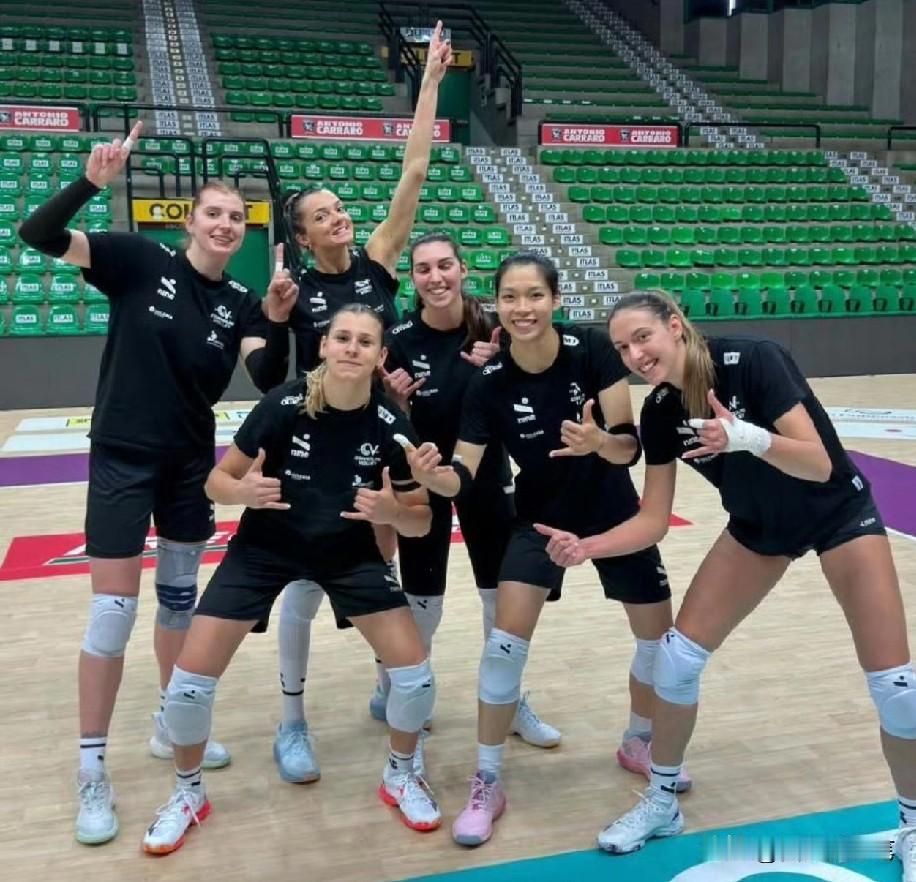 我们赢了[加油]庄宇珊和她意甲的团队已准备好了! 瞧,庄宇珊和队员,一起合影庆祝队内对抗胜利。每个人脸上都露出了胜利的微笑,还自信满满地竖起来大拇指,为自己鼓劲,也为明天到来的比赛加油。 是的,她们太需要这份信心和勇气,尤其面对联赛毫无败绩的科内利亚诺女排,庄宇珊的发挥对团队显得更加重要。祝福她们为我们奉献一场精彩的比赛。土楼姑娘庄宇珊 庄羽珊意甲首秀