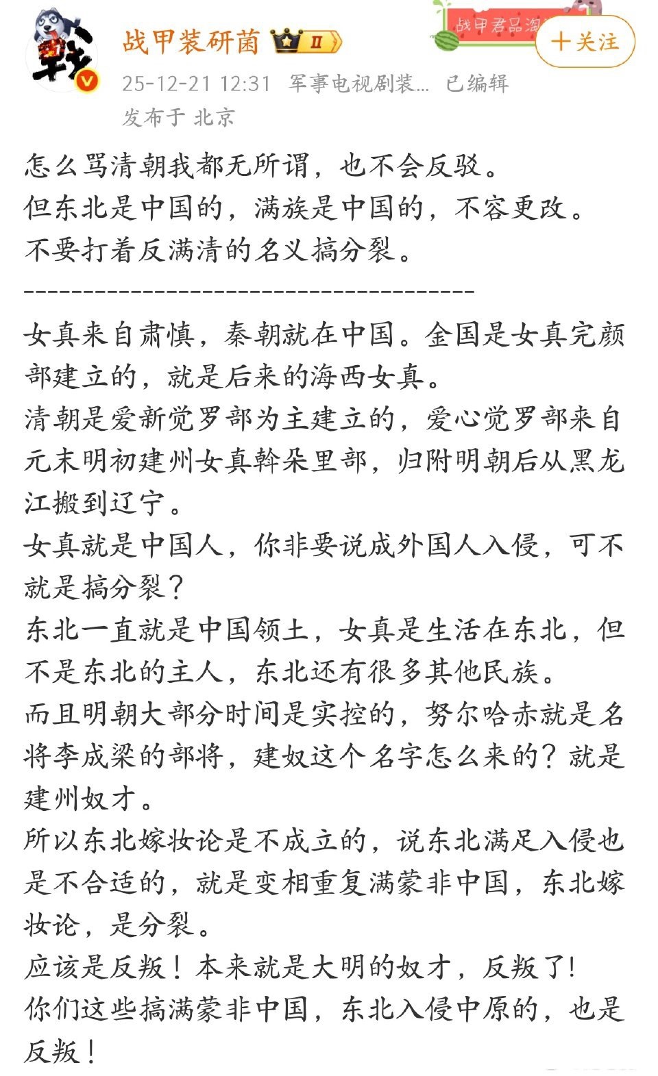 东北是中国的,满族是中国的,不容更改,不要打着反满清的名义搞分裂。