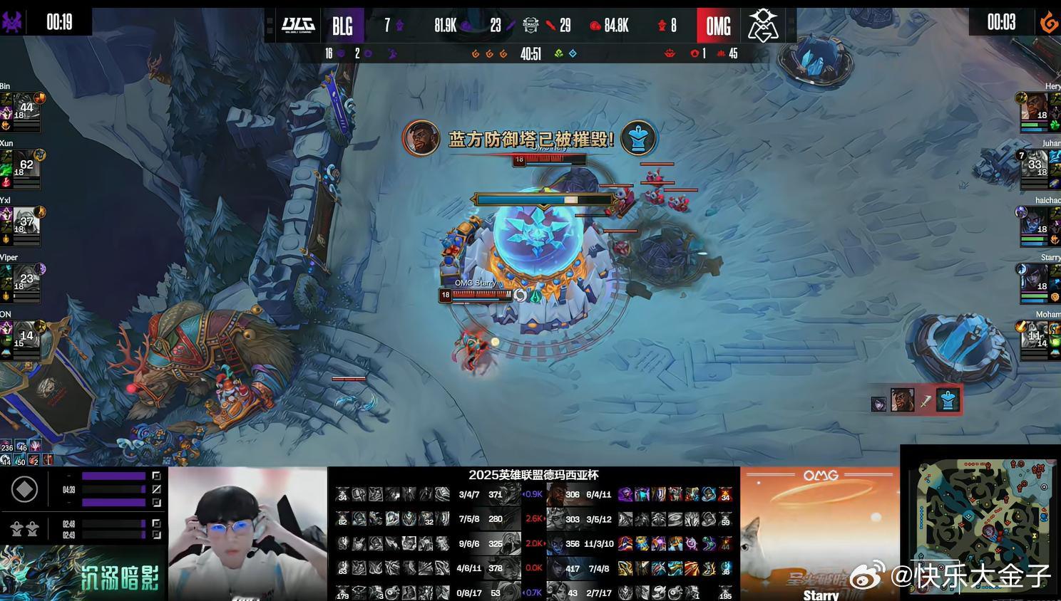 偶买噶!OMG第一局把BLG弄了,BLG出石头人打野被OMG选出的塞拉斯疯狂偷大,Viper被创晕,无奈搞了个金身,但仍然难以存活。OMG掉了两个大龙,门牙都被推掉,却赢得了团战,拿下第一局。BLG对战OMG英雄联盟