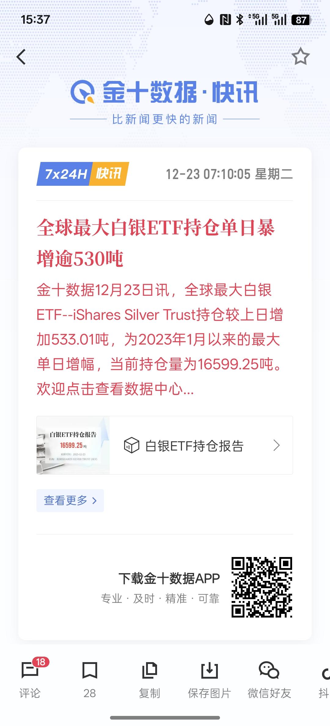 全球最大白银ETF,持仓单日就暴增530吨,这个数据有点恐怖,这高位拿那么多白银,难道还要大涨一下?把白银当成黄金来看待,这真的是全球资金往贵重金属方面加码投资!最后会走向何方?如果一旦发生大规模的下跌,谁会成为最后一个站岗呢?所以这种疯狂的程度还是谨慎为妙,目前,国内已经在贵州金属期货方面提醒,风险与提示风险控制好仓位,黄金白银这个涨幅相对巨大!站在一个高位还是稍微恐高一下比较,就怕资本最后的疯狂,吸引更多的人来高位接盘!