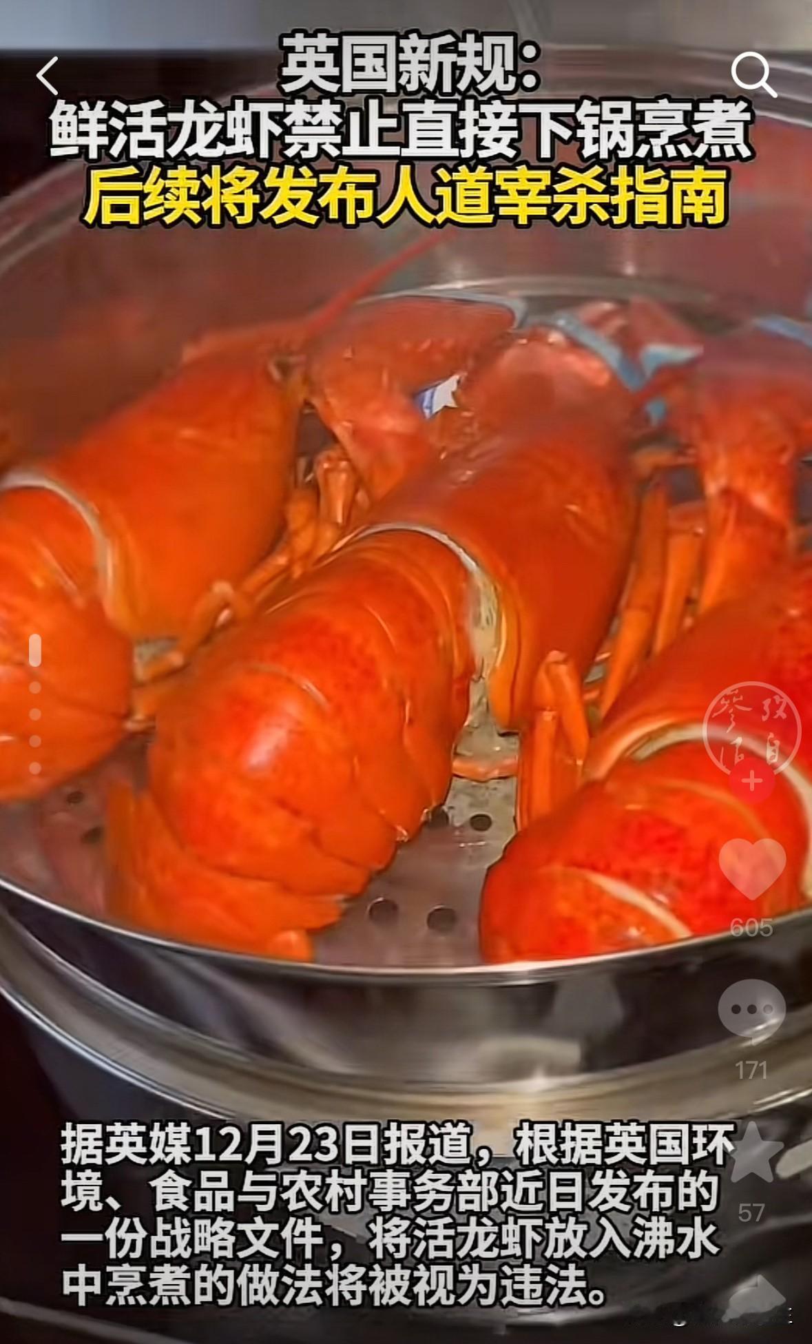 英国这回为了只龙虾的“临终尊严”,真是把伪善玩到了极致。 以后在那边想吃龙虾,直接下锅煮居然不行了,说是龙虾会感觉到疼,太残忍。 那咋办?得先给虾搞个“安乐死”,要么冻晕,要么电晕。 最离谱的是这套电击设备,一台要干掉3500英镑,换成人民币就是3万多块钱! 我就想问问,这3万块的成本摊在谁头上? 不用想,肯定还是食客买单,“羊毛出在羊身上”这道理全球通用。 当地老百姓直接就在网上骂开了,这日子本来就紧巴,吃个饭还得替龙虾的痛觉神经付账? 富人只管谈情怀讲文明,穷人却连饭碗都要端不稳了。 花几万块给食材做个“电疗”再进嘴,难道这肉味儿能吃出金子味来? 我就不明白了,这下反正都是死,为什么不能这样?广大网友们,你们有什么看法?
