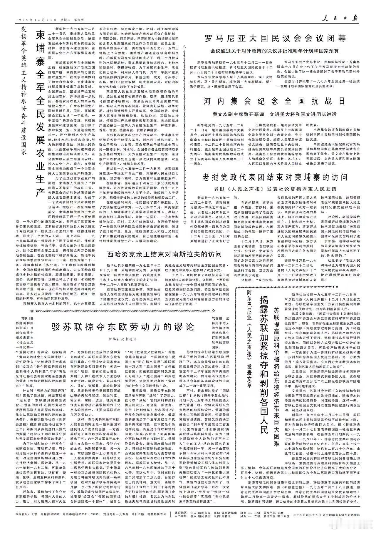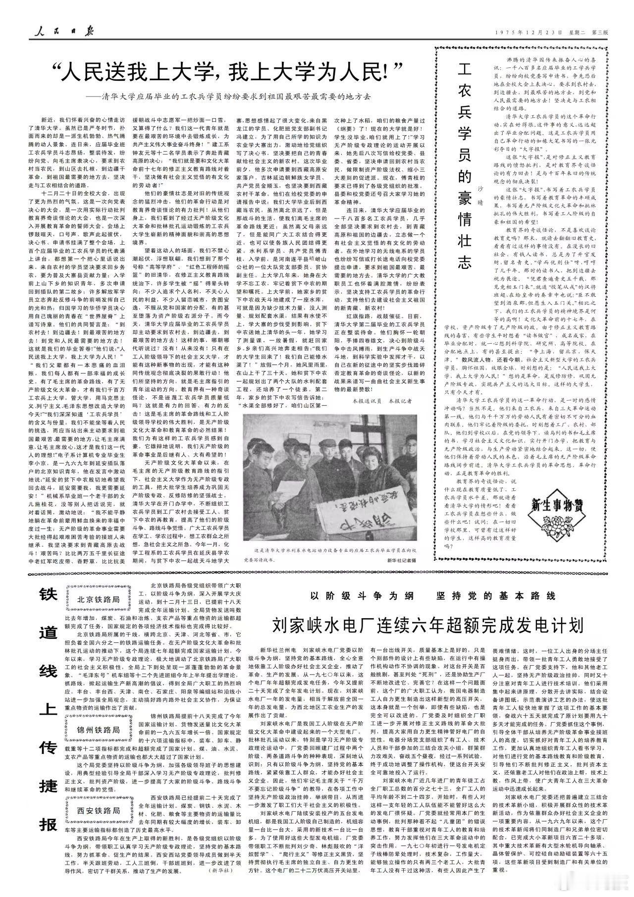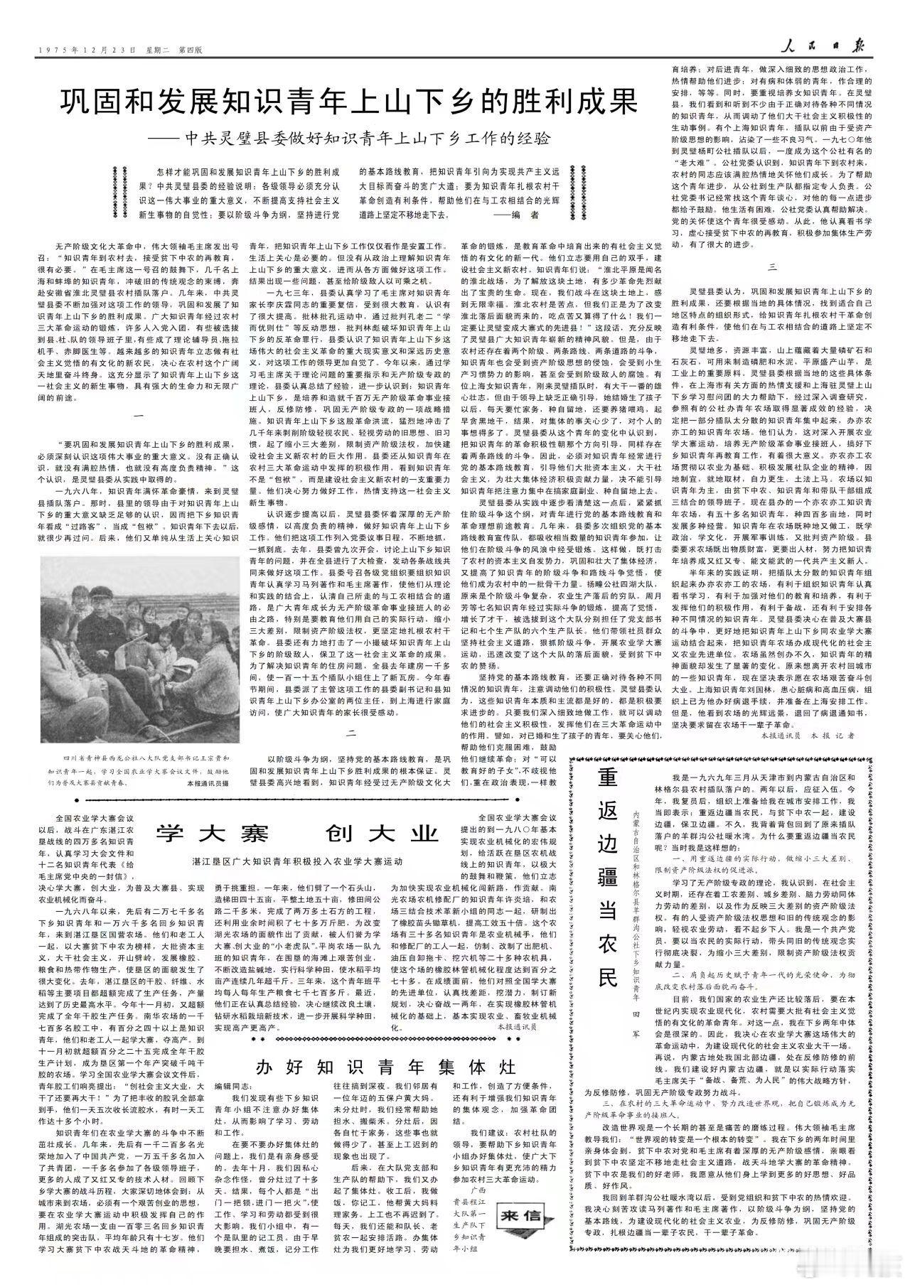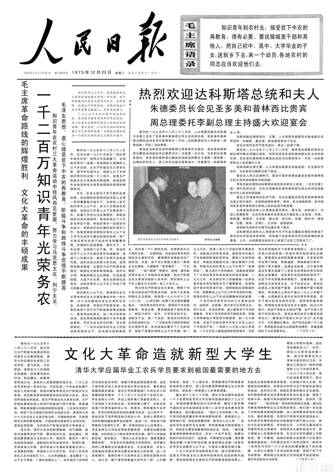 1975年12月23日的《人民日报》发表了以下内容?1版:今年又有二百万知识青年