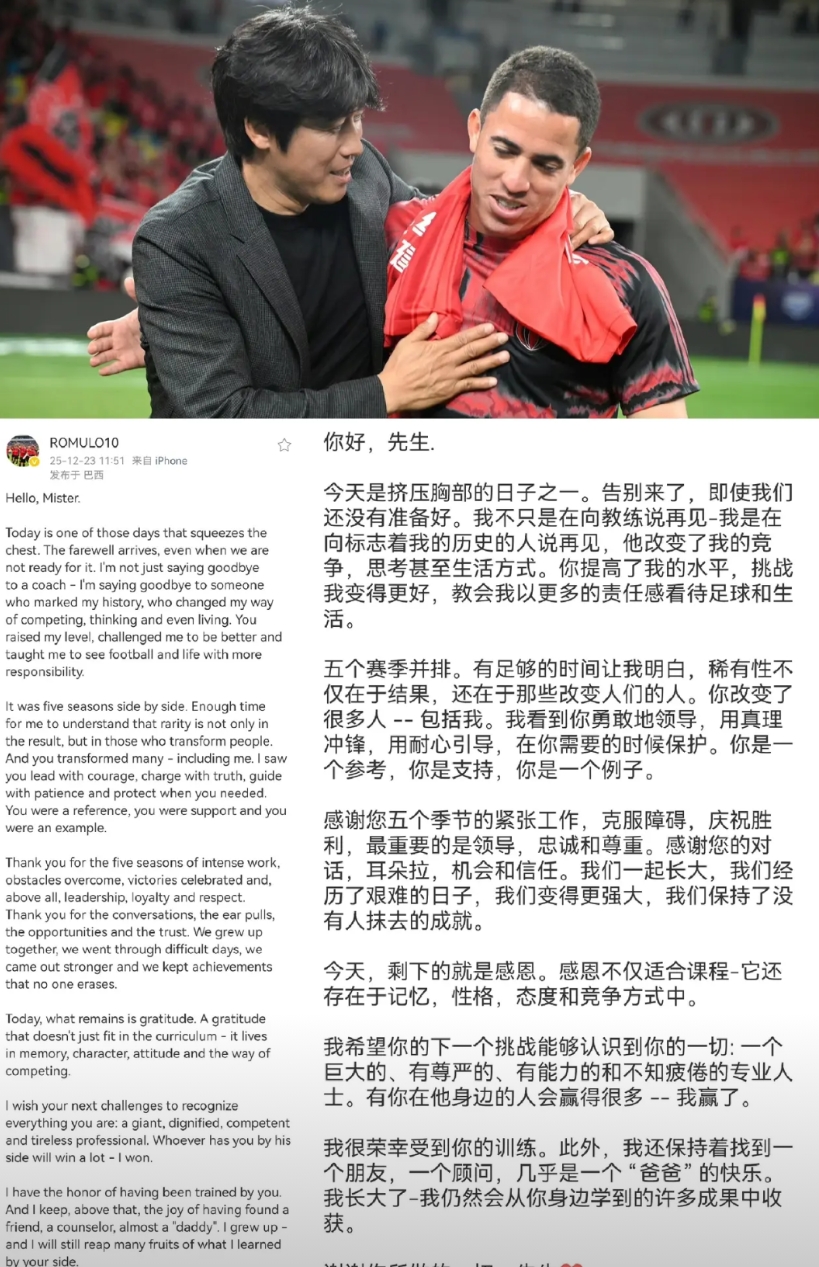 这是罗慕洛的真情流露,虽然人在巴西,但是也忘不了恩师徐正源对自己的知遇之恩,作为成都蓉城的中场核心,罗慕洛也是在徐正源手下一步一步走上来的,现在徐正源离开了,罗慕洛心理肯定异常难受!