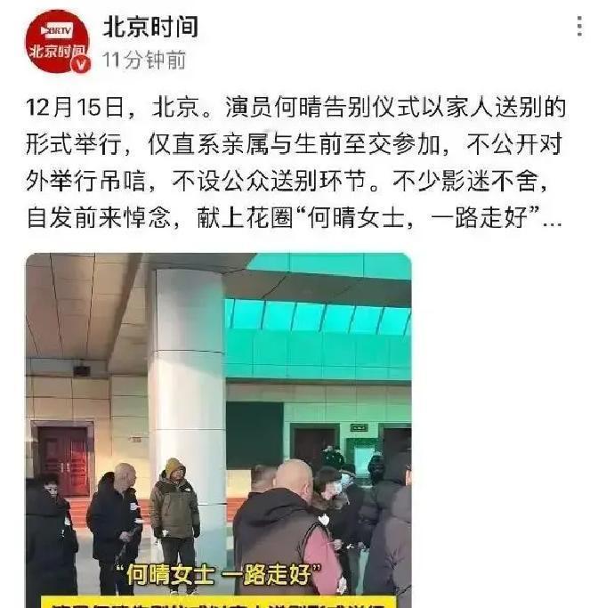 娱乐圈传来令人惋惜的消息,曾在多部经典影视剧中留下倩影的演员何晴,因脑瘤医治无效,在北京初雪之际离开了我们,享年61岁。 追悼会上,影迷们手持鲜花,花圈上写满“一路走好”,表达着对这位“古典美人”的怀念。大屏幕上播放着她在《秦可卿》中的惊艳瞬间,仿佛时间都为之静止。 何晴的儿子许何,刚毕业不久,强忍悲痛捧着母亲的骨灰盒,令人心疼。曾与何晴传出绯闻的廖京生也低调现身,鞠躬送别,引发人们对往昔情事的追忆。 何晴曾出演《西游记》《三国演义》《红楼梦》《水浒传》四大名著,是名副其实的古装女神。九十年代,她又凭借琼瑶剧《青青河边草》红遍两岸三地。 与病魔抗争的十年里,何晴积极乐观,即使术后留下疤痕,也笑着面对。她还是没能战胜病魔,安静地离开了人世。 追悼仪式一切从简,正如她生前所愿。人们会永远记得她在荧幕上的美好形象,记住她曾经带给我们的感动。正如王卫国所说:“记住就永远。
