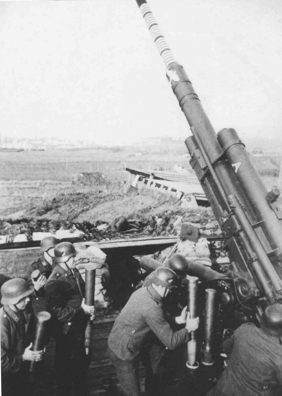 [呲牙] 真是福大命大——1944 年 7 月 6 日,英国,巴辛伯恩机场。一架完成慕尼黑空袭任务的美国 B-17 轰炸机机组人员正在检查机身遭德军高射炮击中后留下的损伤。大家可以发现,机身被炸出了一个巨大的豁口,差一点就把飞机炸成两段。 1944 年 6 月诺曼底登陆后,盟军为摧毁德国军工生产能力、切断其后勤补给线,加大了对德国本土工业城市的空袭力度。慕尼黑作为德国南部重要工业中心,拥有飞机制造、坦克零部件生产等军工企业,是美国陆军航空队下属的第八航空队的重点打击目标。B-17 一般用来执行昼间精确轰炸任务,依赖编队自卫火力和高空飞行规避德军战斗机,但德军部署的高射炮(尤其是著名的 88 毫米 高射炮,参见图2)仍是重要威胁。 B-17 是二战期间美军主力重型轰炸机,绰号 “飞行堡垒”,以结构坚固、抗损性强著称。机身采用全金属结构,关键部位(驾驶舱、燃料箱)配备装甲防护,即使被高炮破片击穿机身、打坏部分机翼,仍有大概率返航。