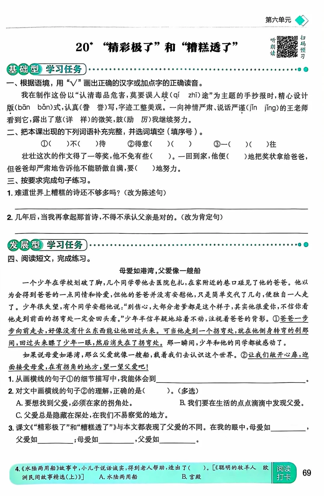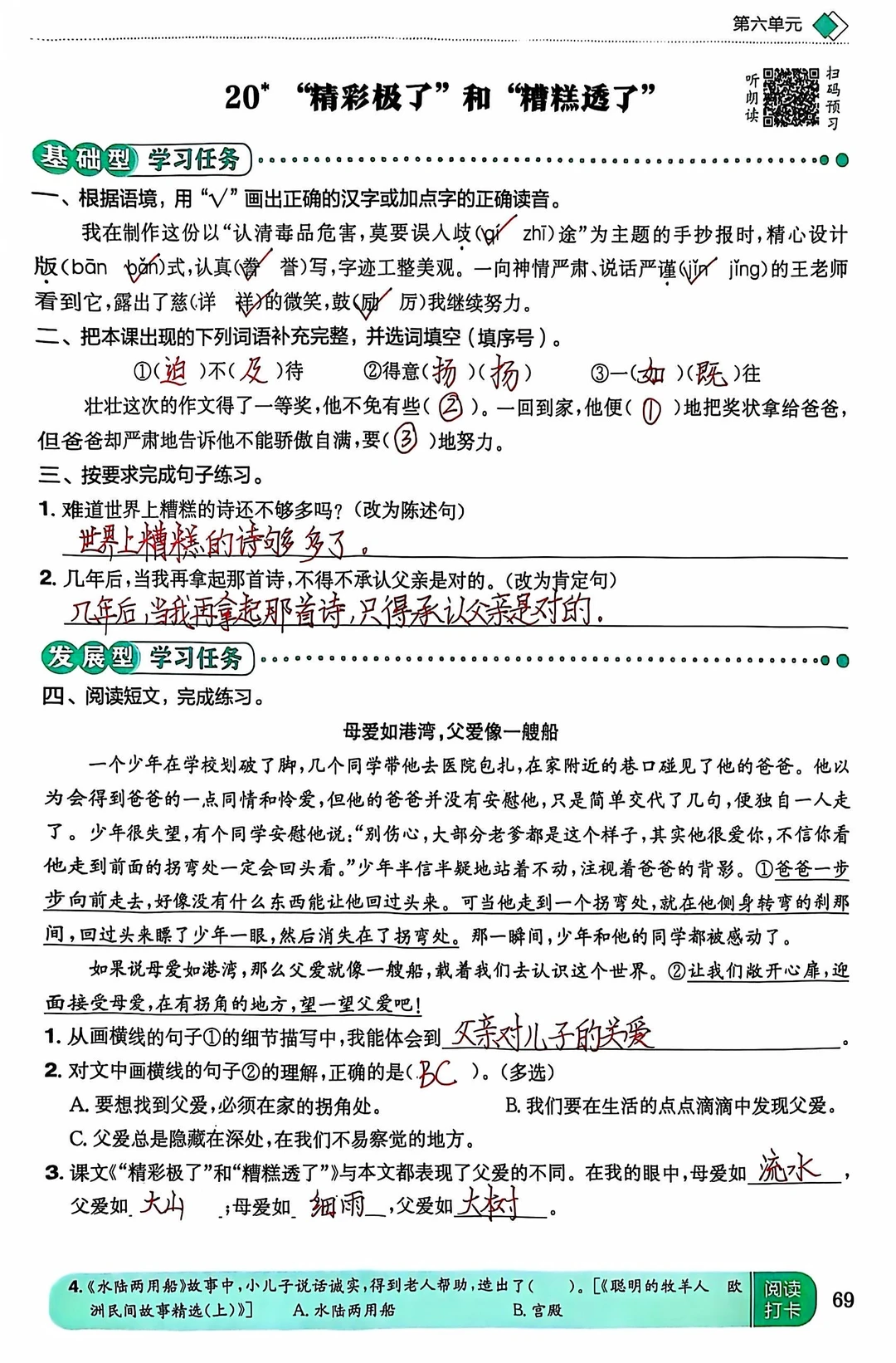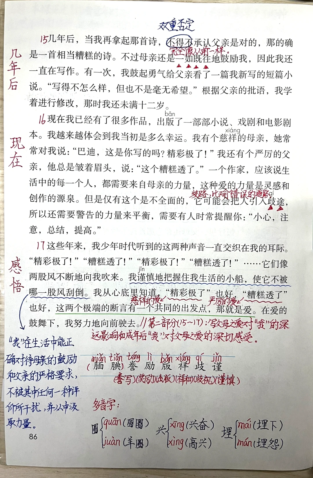 《“精彩极了”和“糟糕透了”》课堂笔记➕课后练习题