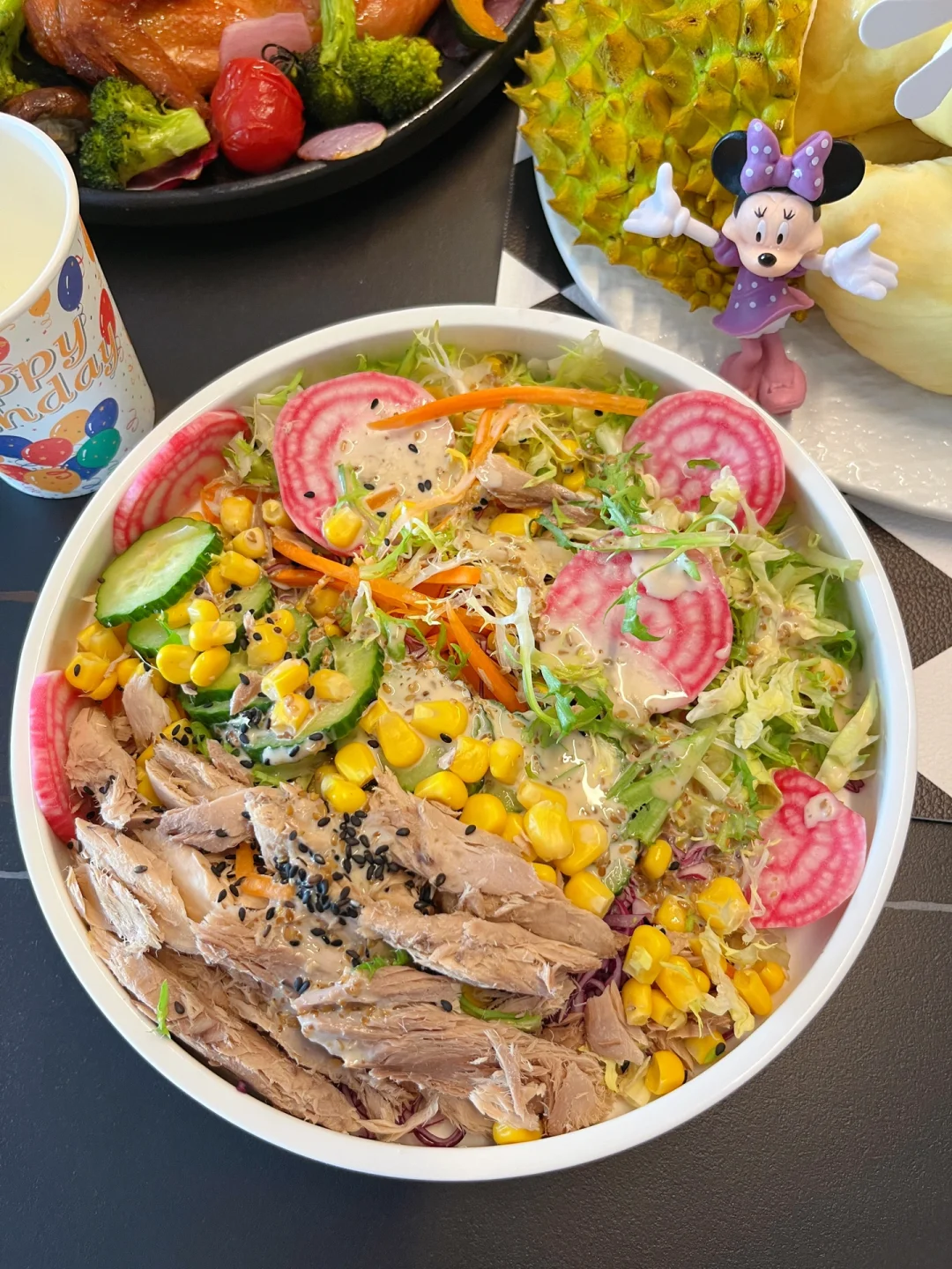 给我的姐妹过生日,当然要亲自做蛋糕才更有意义!这次挑的榴莲是报恩来的没错,第一次做就很成功,装饰插件其实是去年买的了,没想到今年才用上。松饼角也是简单又好吃的小甜品,配上水果酸奶口感酸甜顺滑一盘没吃够~