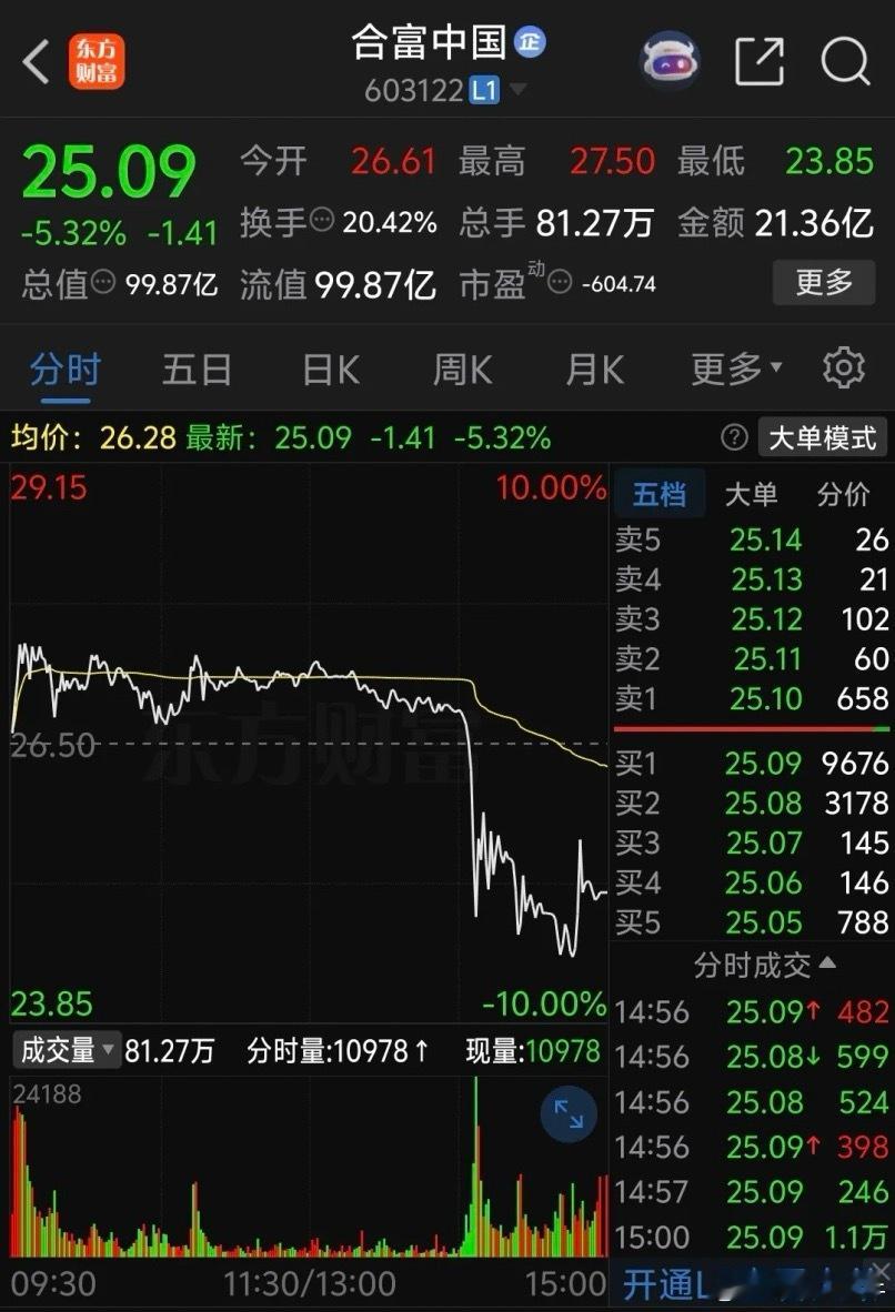 平潭发展午后突然跳水暴跌,从涨3%几分钟之内到暴跌6%,主力疯狂砸盘出货,之后快速反弹后又回落震荡,神奇的是尾盘又拉起来上涨1.47%,大牛市资金就是太多了,午后这么大的抛压居然抗住了,但是今天主力资金净流出2.156亿,最近这几天频频跳水,市场资金虽然非常充足,但是从合富中国看获利盘出逃更为果断,合富中国午后一度砸跌停,获利盘不顾一切出逃,最近涨的比较猛烈的牛股风险已经越来越大了。