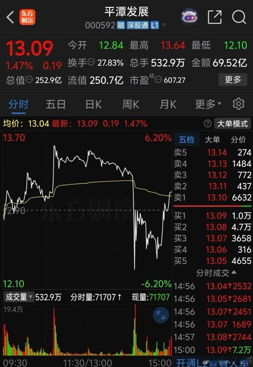 平潭发展午后突然跳水暴跌,从涨3%几分钟之内到暴跌6%,主力疯狂砸盘出货,之后快