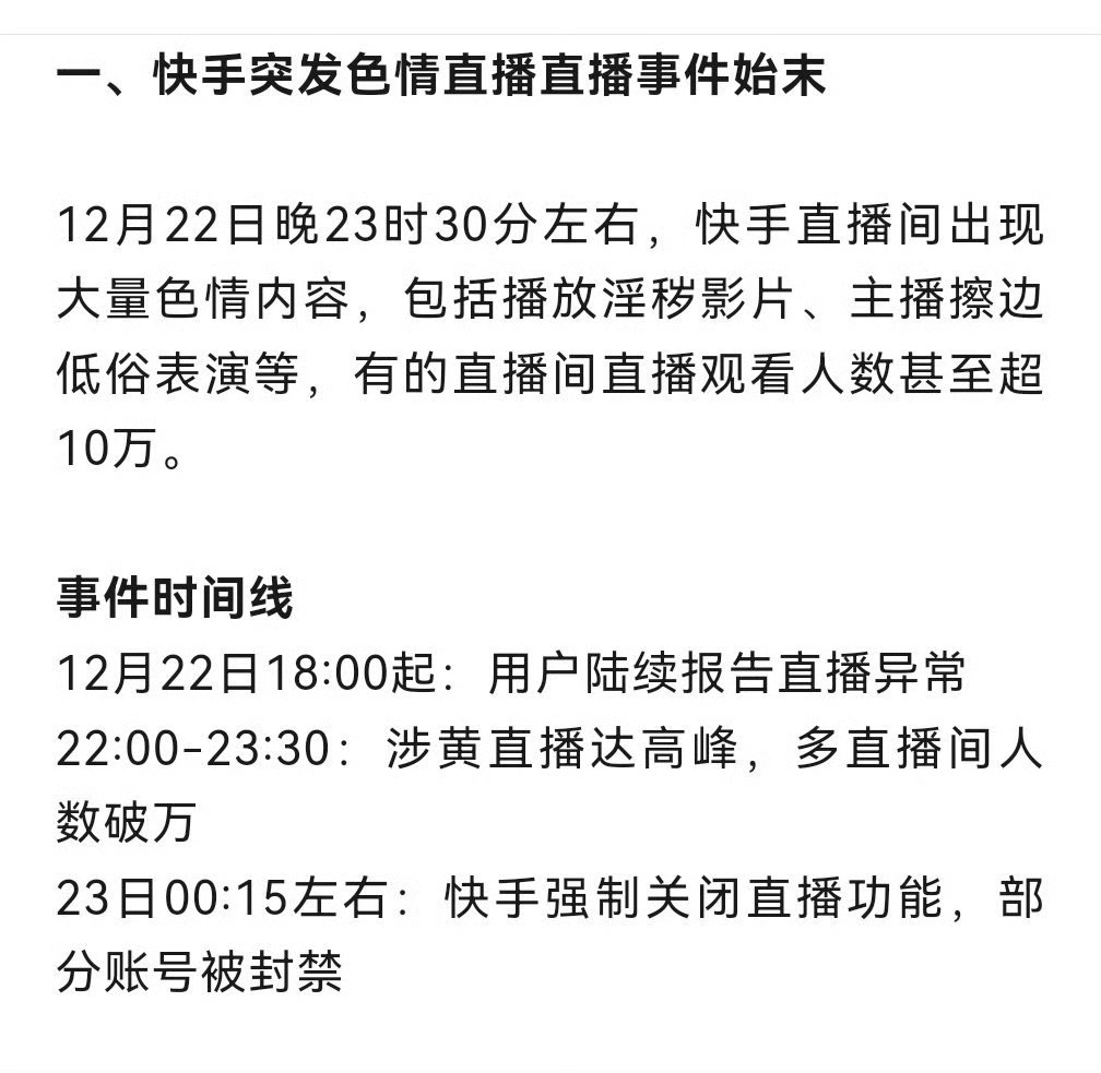 2025年12月22日,这一天是快手直播的耻辱日。作为主流短视频平台,快手居然在“黑灰产攻击”下,出现大规模违规内容,多个直播间出现淫秽色情、血腥暴力等违规视频,部分主播甚至在直播中“袒胸露乳”,即使平台后台不断封禁单一账号,违规内容依然如潮水般爆发增长。