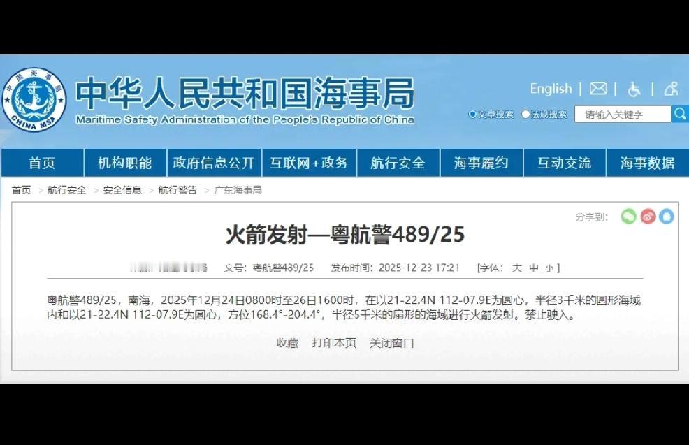 火箭发射 个人观点:中国海事局23日消息,阳江海事局发布消息:禁海使入,有火箭发射。 这次不单是军事活动,而且武器升级为火箭。 这完全是回应,日本公开发表的修改安保三文件,公然改变日本防御政策所做的初步回应。 个人认为:今天必会发生多部门多形式的反制日本之事。