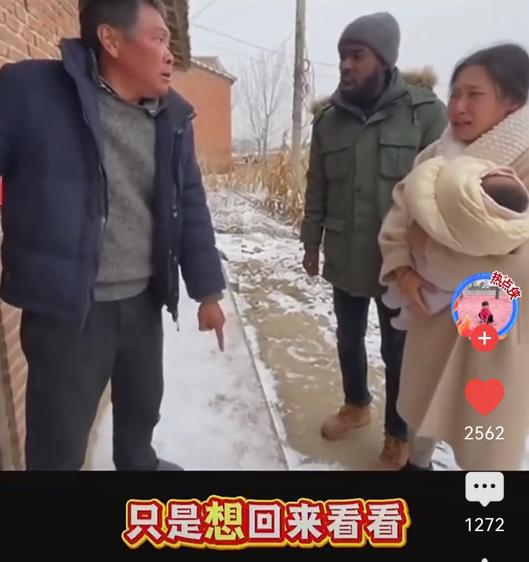 女子带黑人老公和孩子回娘家被老父亲拒之门外,当父亲说出那句话的时候,万千网友破防了! 视频里,在X省的农村,一个衣着时尚的女子带着自己威猛高大的黑人老公,还有襁褓中的婴儿,一起回娘家看望自己的父母,没想到被父亲拒之门外。 黑人老公哀求道:我们就是想回来看看你,这也是你的女儿,孩子还这么小,外面又这么冷,你为什么不让我们回家? 而老父亲并不搭理黑人女婿,只对着自己的女儿,怒不可遏的歇斯底里道:你们都别进来,你自己选的路,你自己扛! 看着这位老父亲瞪的滚圆的双眼,脸直红到脖子根,看样子非常的气愤,对黑人女婿和黑外孙,完全视而不见,他恼羞成怒的样子,似乎要把女儿一家三口扔到非洲才会甘心。 有人说,这都说明年代了,还这么歧视黑人,每个人都有选择自己幸福的权力,这个老父亲也太传统封建了。但网友并没有指责这个老父亲的“封建”,而是站在他的角度回应道:这一定是十里八乡的邻居的闲言碎语戳痛了,当他说出这句“你自己选的路自己扛”的时候,内心一定在滴血,太可怜了! 在我看来,这个父亲一定是和女儿有过约定,比如反对她找黑人老公,否则不认这个女儿,不要进这个家门之类的,而女儿也是为了自己的性福,决定不再回这个“不懂人心”的家,转头选择了自己的性福,那么这个结果也是显而易见的,所以才有了今天的这个局面。 对此,你怎么看?