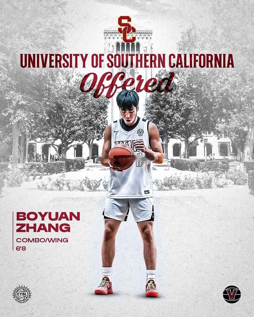 张博源再获三所大学邀请!目前已经获得11家大学邀请 据媒体报道,张博源又获得了南加大、ulv、伊利诺伊大学的邀请信,这样一来张博源已经手握11所NCAA大学的邀请信,目前拿到最多邀请信的除了郇斯楠就是他了,而郇斯楠是在美国打了三年高中联赛了,张博源是今年9月才去美国的,目前加起来还没有打满20场比赛。 张博源今年19岁,身高2.03,臂展2.05,体重102公斤,司职小前锋,他的突破和三分球能力都非常出色,他在美国高中联赛的比赛中大部分比赛都可以砍下20+,最近更是连续四场20+,目前场均可能砍下20+,三分球命中率在40%左右,个人感觉张博源未来真的有希望进NBA首轮,不过接下来他选择进入哪所大学很重要。