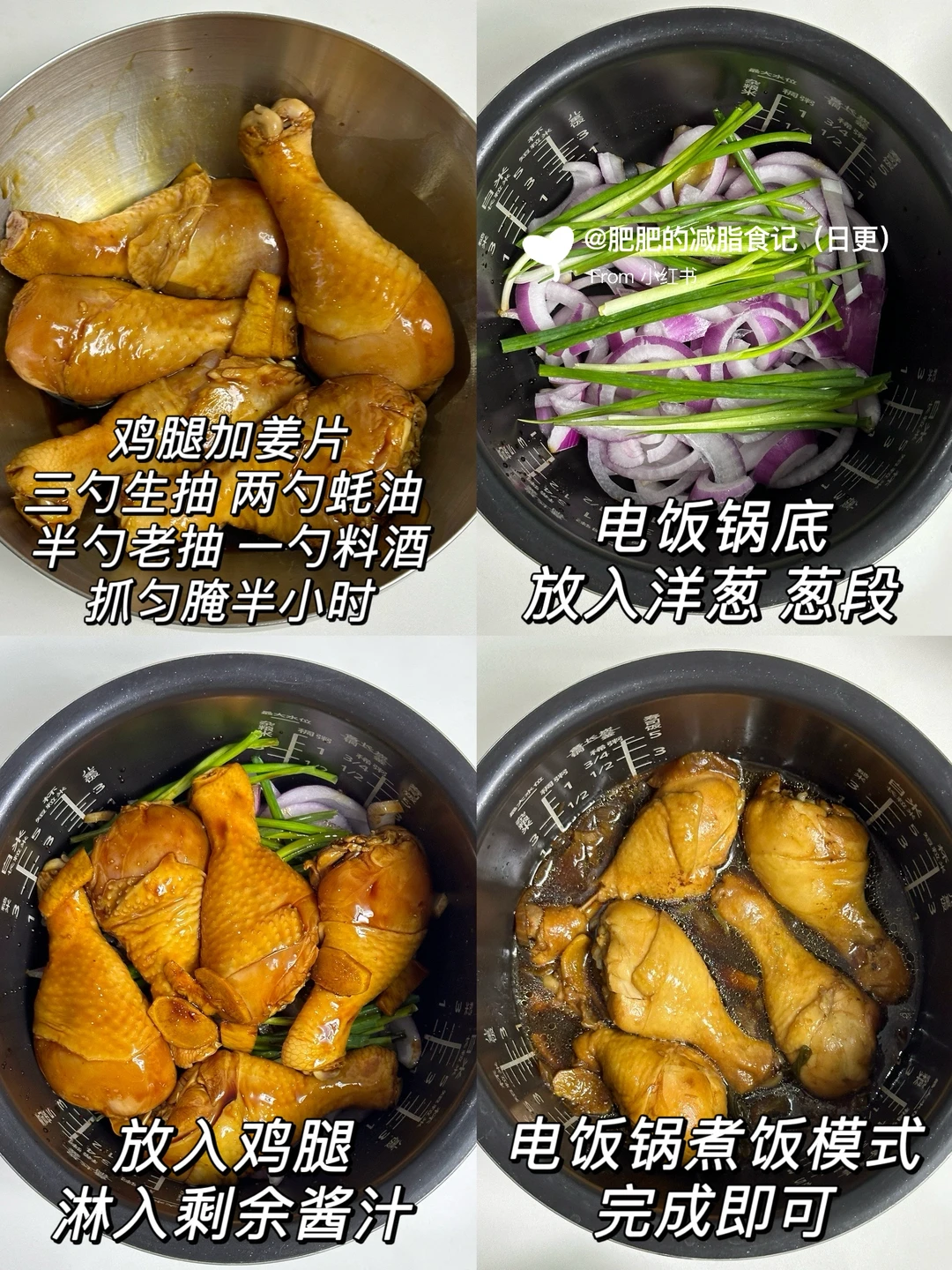 分享巨巨好吃的电饭锅焖鸡腿!做法巨巨简单!新手0失败!鸡腿巨门巨入味!真的好吃!低卡饱腹!姐妹们冲! [害羞R]食材做法如图!姐妹们快去试试!!