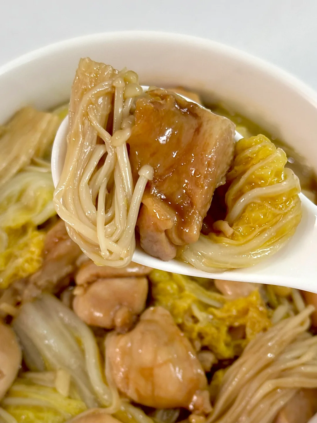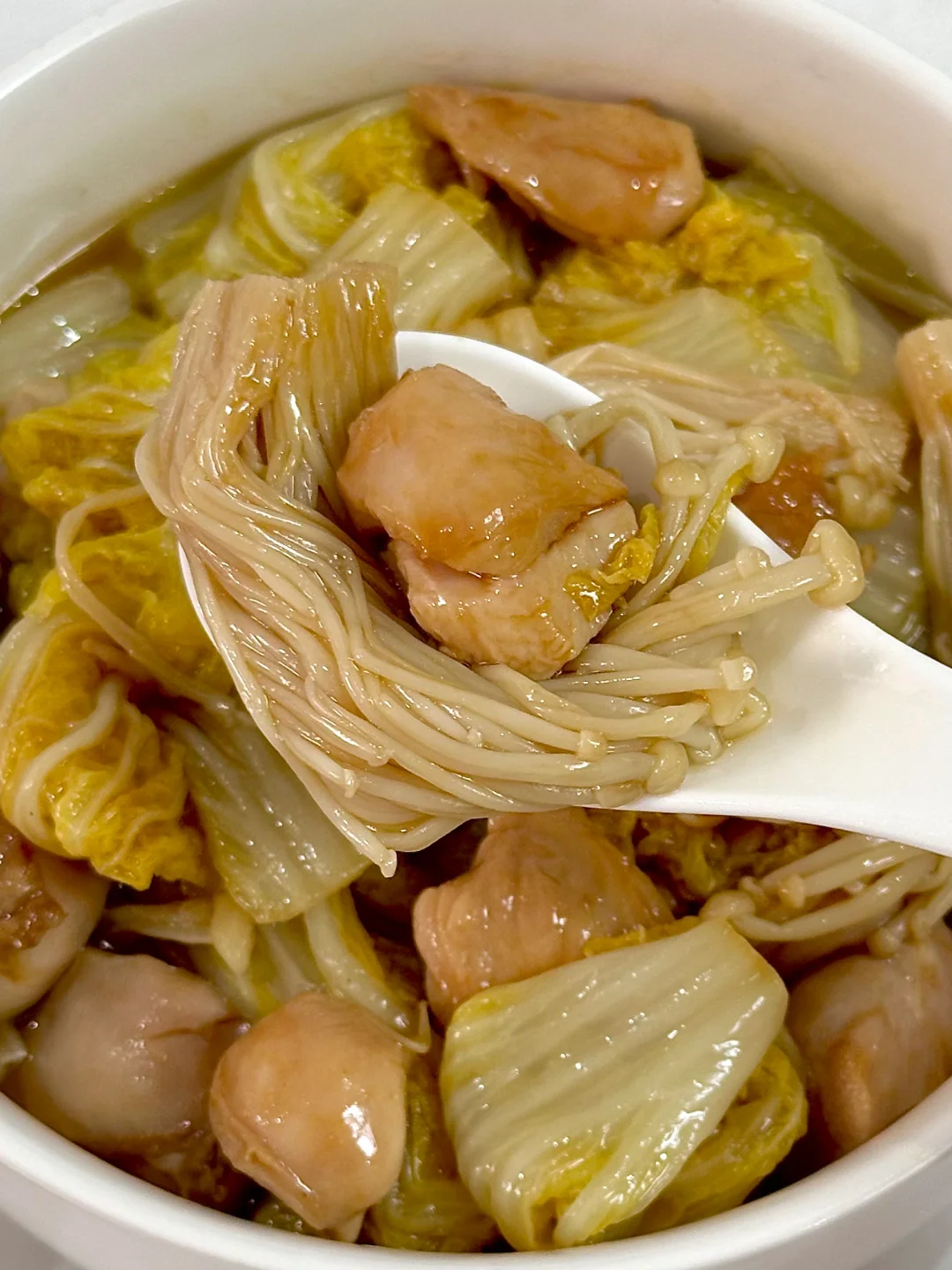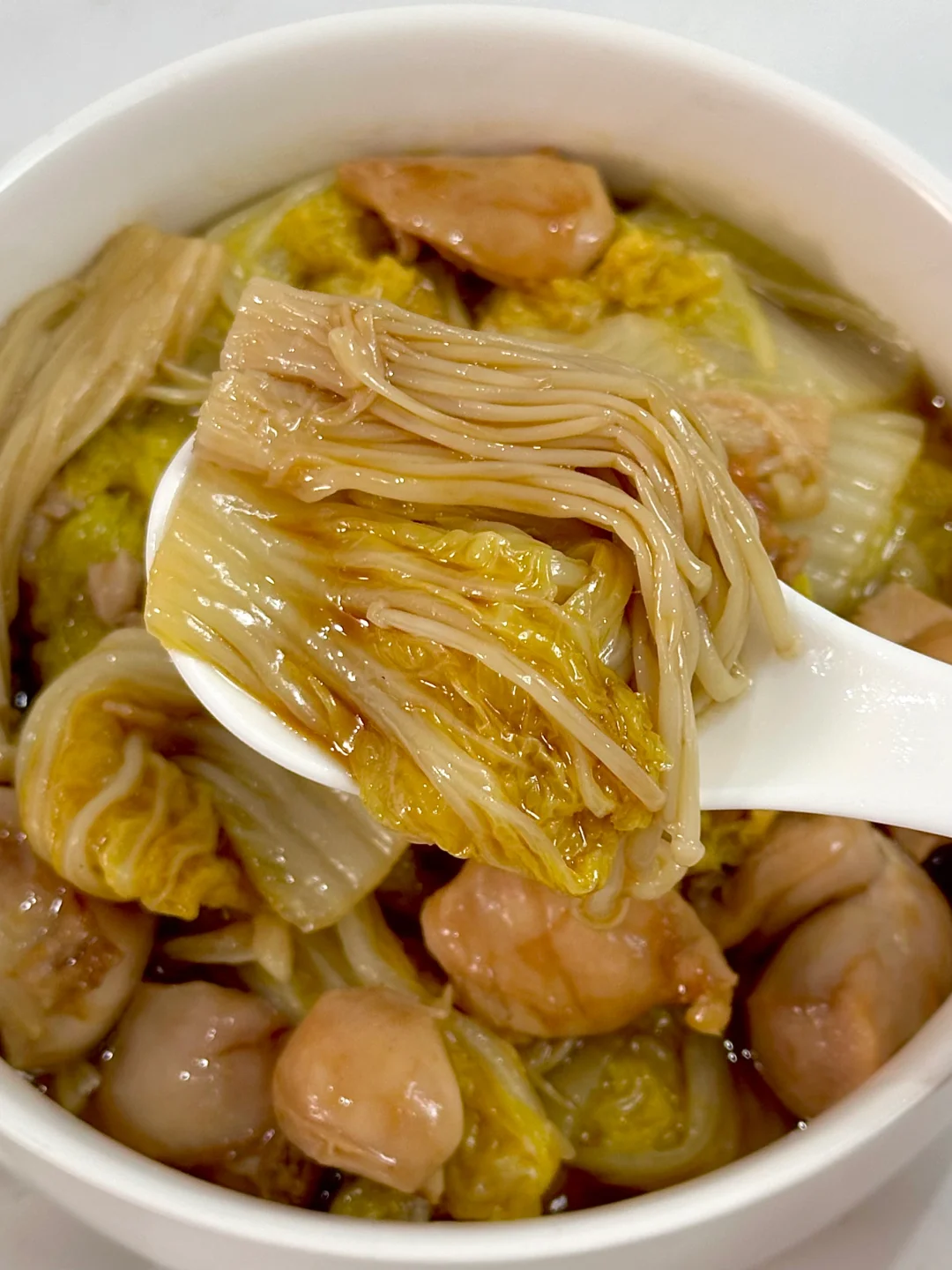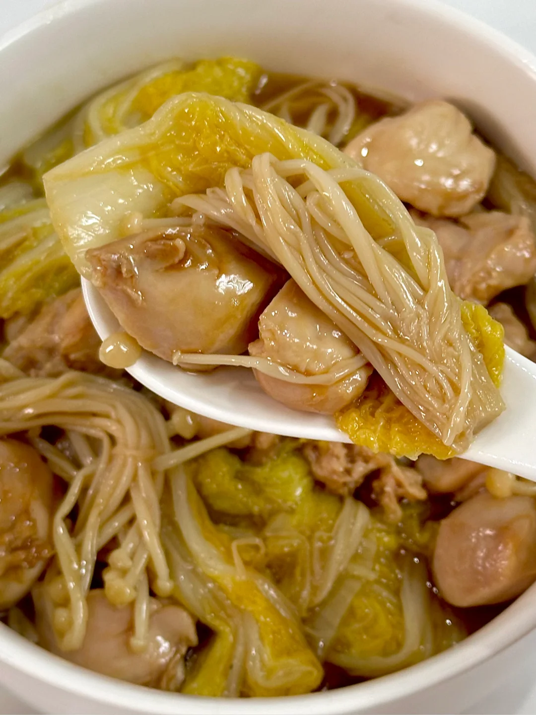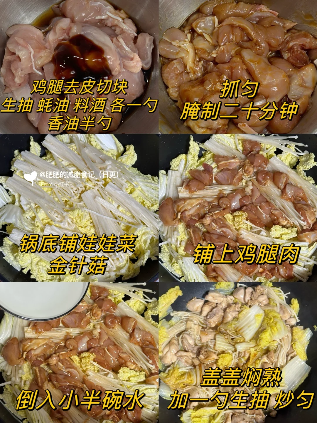 分享巨巨好吃的鸡腿金针菇娃娃菜煲!!真的好绝!巨香巨下饭!鸡腿肉嫩滑好吃!娃娃菜也绝了!低卡饱腹! 食材做法如图!姐妹们快去试试!