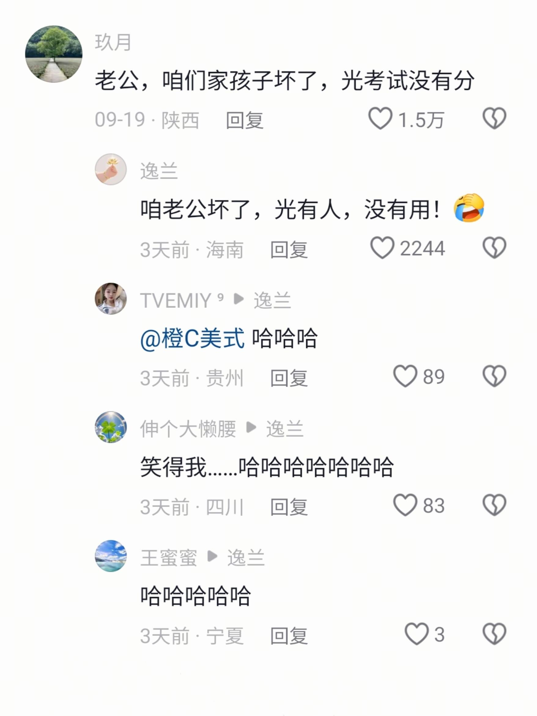 老公,咱们家孩子坏了,光考试没有分