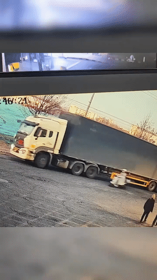 这名骑电动车的女子真是死里逃生啊! 她当时正好处在大货车的视线盲区里! 货车司机在拐弯的时候根本就看不到她呀。交通事故女司机