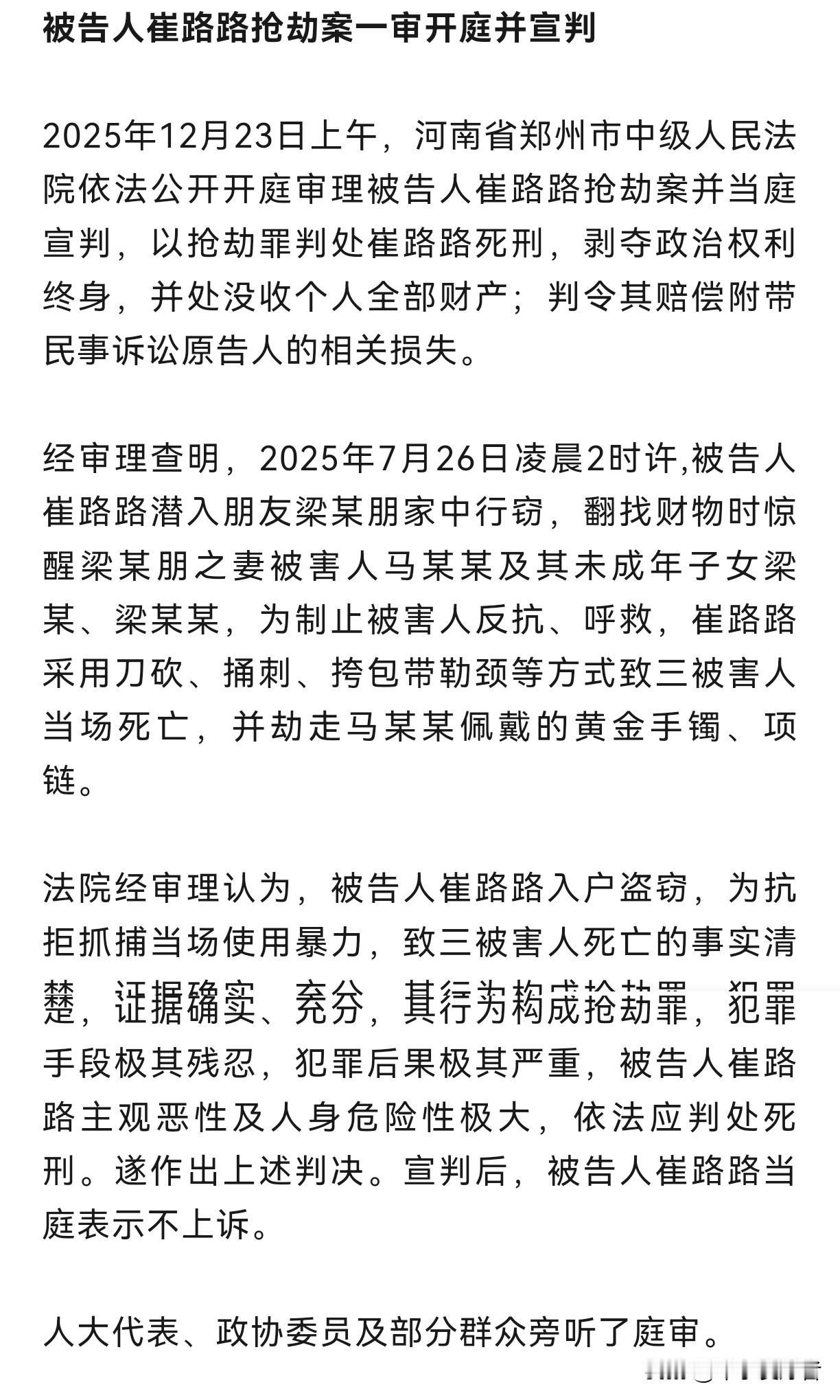 杀害发小妻儿三人,崔路路被判死刑