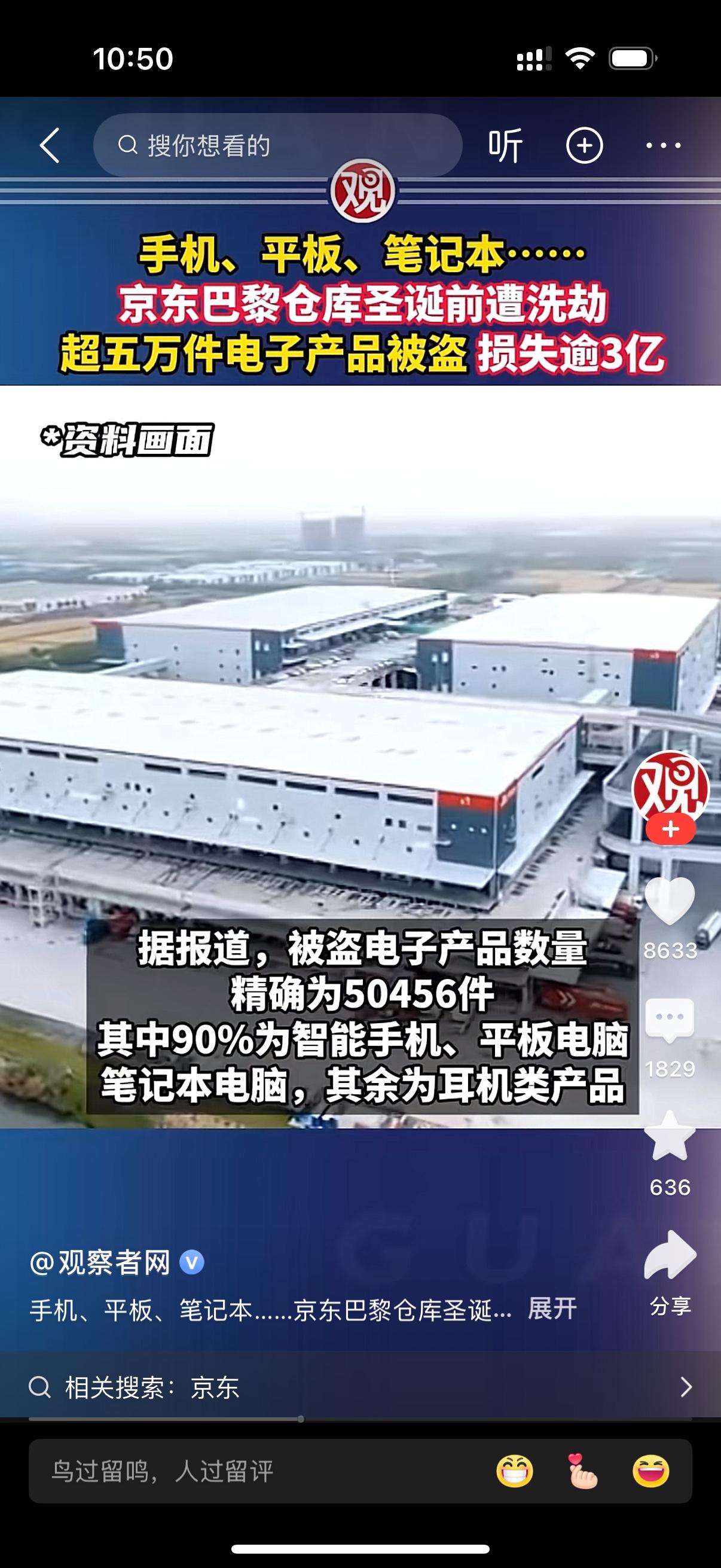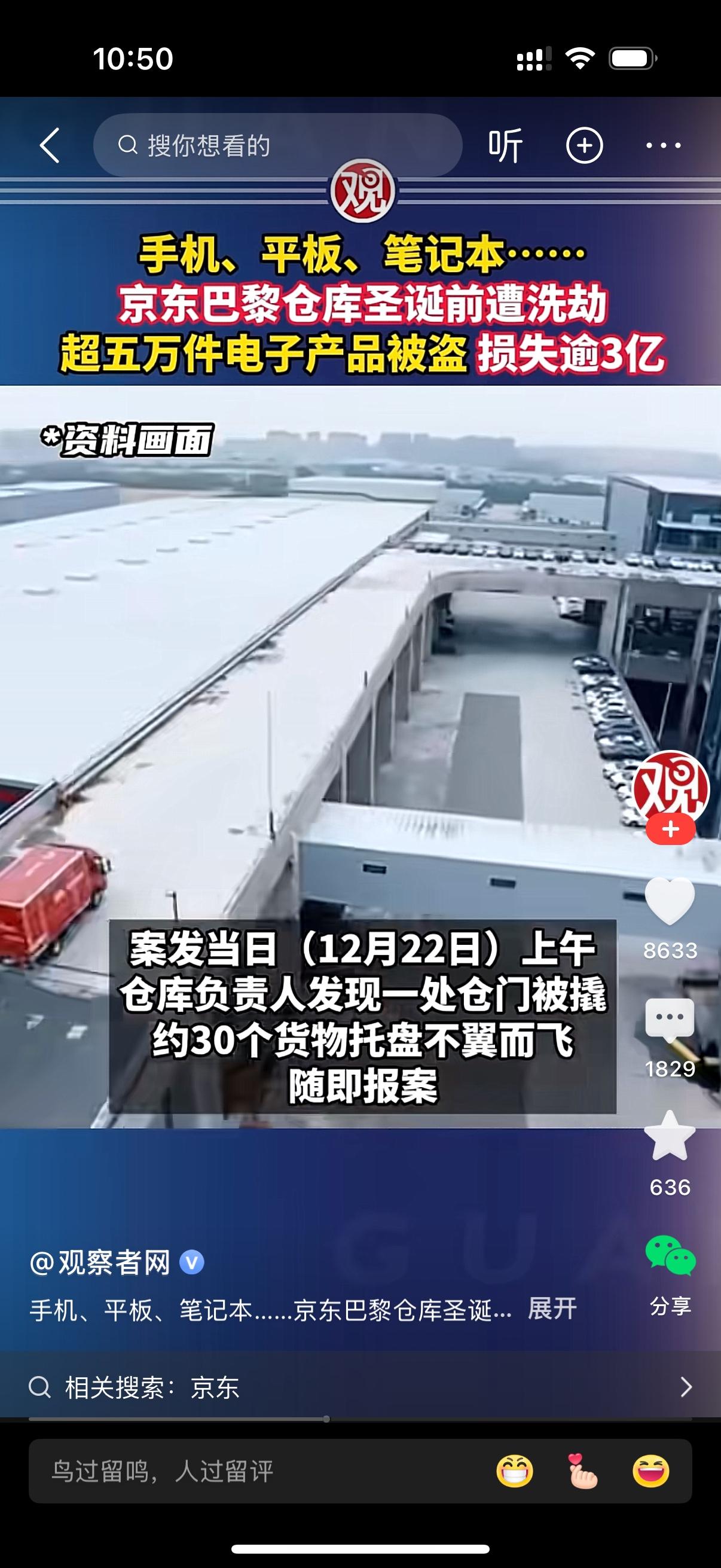京东的巴黎仓库在圣诞节前夕被洗劫一空。平板,手机,笔记本超5万件电子产品被盗,损失逾3亿。这对京东,对刘强东都是一个沉重的打击。这不仅仅是钱的问题,这么多电子产品里面的资料那是最珍贵的。万一哪个客户追着不放,京东很难脱身。