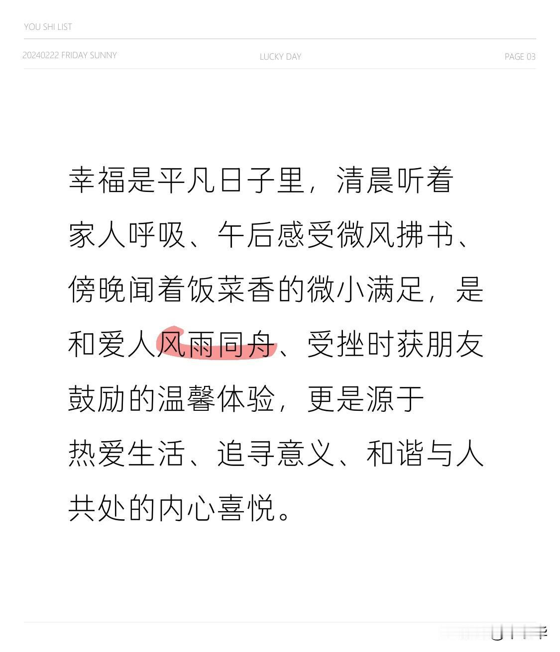 幸福这玩意儿,还真藏在平凡岁月的细微之处。清晨,听着家人平稳的呼吸,那是安稳的力量;午后,微风轻翻书页,思绪也跟着飘远;傍晚,饭菜飘香,简单又治愈。 幸福也是温暖的体验,和爱人一起经历风雨,相互扶持;受挫时朋友的一句鼓励,瞬间充满力量。它更是内心的欢愉,当你热爱生活,用心探寻意义,和身边人和谐共处,幸福就满得要溢出来。就像2025年5月15日的早安文案说的,生活向阳,心怀希望,幸福自然常伴。