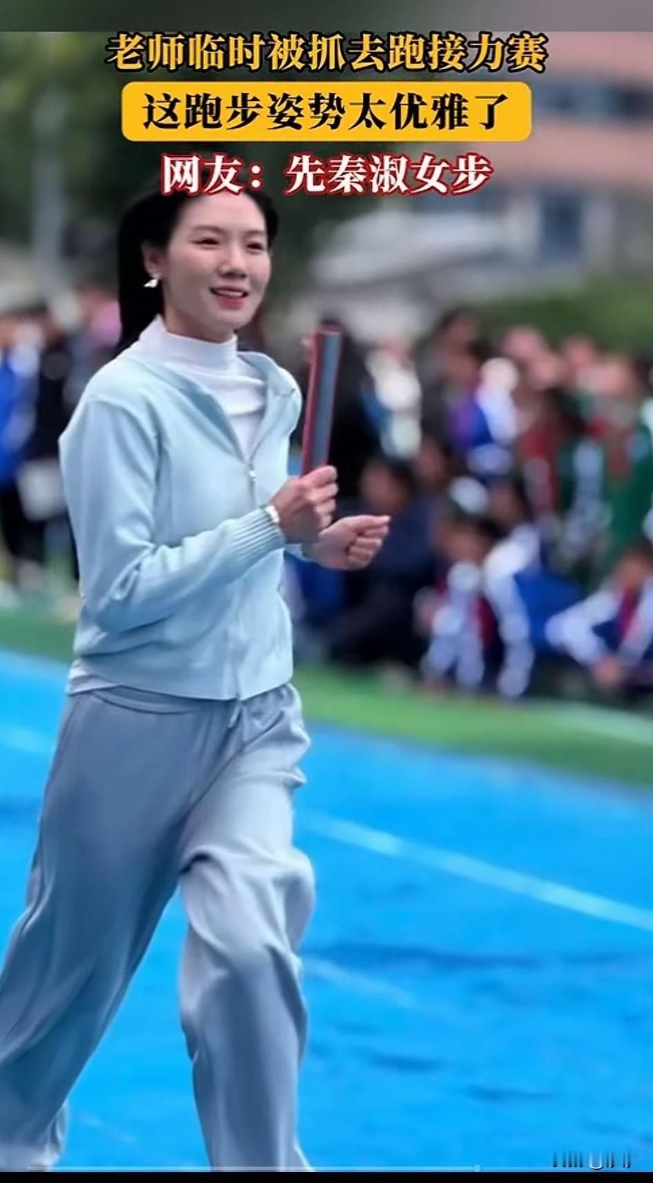 大学女老师, 被临时叫去跑接力赛, 本来还想退回去, 没想到名字就被报上去了, 不得不硬着头皮上阵, 不过她的步伐很优雅, 被她的学生拍了下来, 大家都说这是先秦淑女步, 该老师平时大大咧咧, 一点也没有淑女的样子, 没想到小碎步跑的还挺快, 女生都想当大学老师, 因为大学老师比较清闲, 工资还算可以, 关键还有寒暑假, 目前想当大学老师, 最低是需要一个硕士文凭, 不是好的学校只能去专科或技校, 要么只能去一般的学校当辅导员, 如今的大学也很卷, 这位老师一看就是平时不锻炼, 这个时候没有办法, 大家对大学女老师跑出了先秦淑女步怎么看? 女大学老师 女子接力跑 女生跑八百米 女孩跑 女老师爬山 女子接力赛