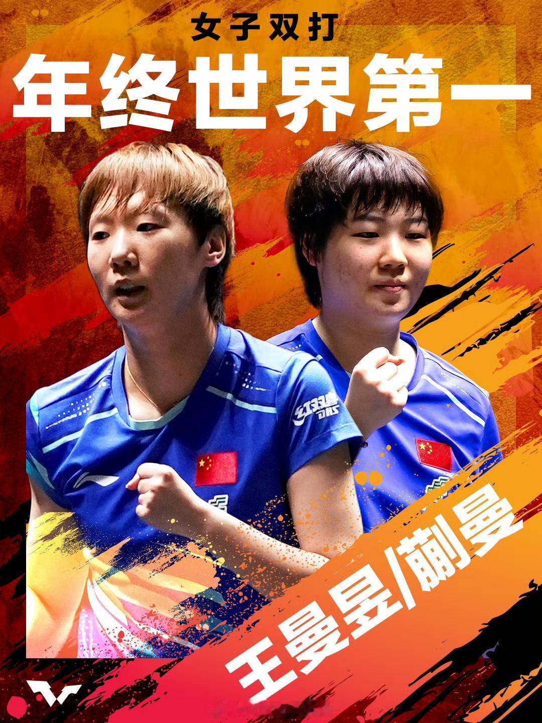 王曼昱/蒯曼组合获WTT女子双打年终世界第一。 两人也是新组合在今年渐入佳境,获得多哈世锦赛女双冠军,王曼昱个人第三次抱得波普杯,蒯曼第一次捧起波普杯。 同时两人搭档拿下2025WTT中国大满贯女双冠军,国际赛场战绩遥遥领先。 蒯曼曾多次在采访中表达通过与王曼昱的搭档,在王曼昱身上学习到了很多从前未能涉及到的纬度经验,是对自己巨大的丰富与帮助! 王曼昱作为巴黎奥运会周期的女双核心,奥运女双组合成员,在洛杉矶周期依旧保持自己女双核心地位!